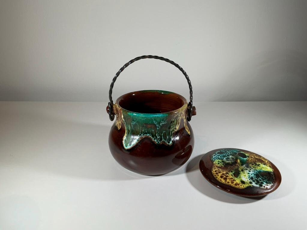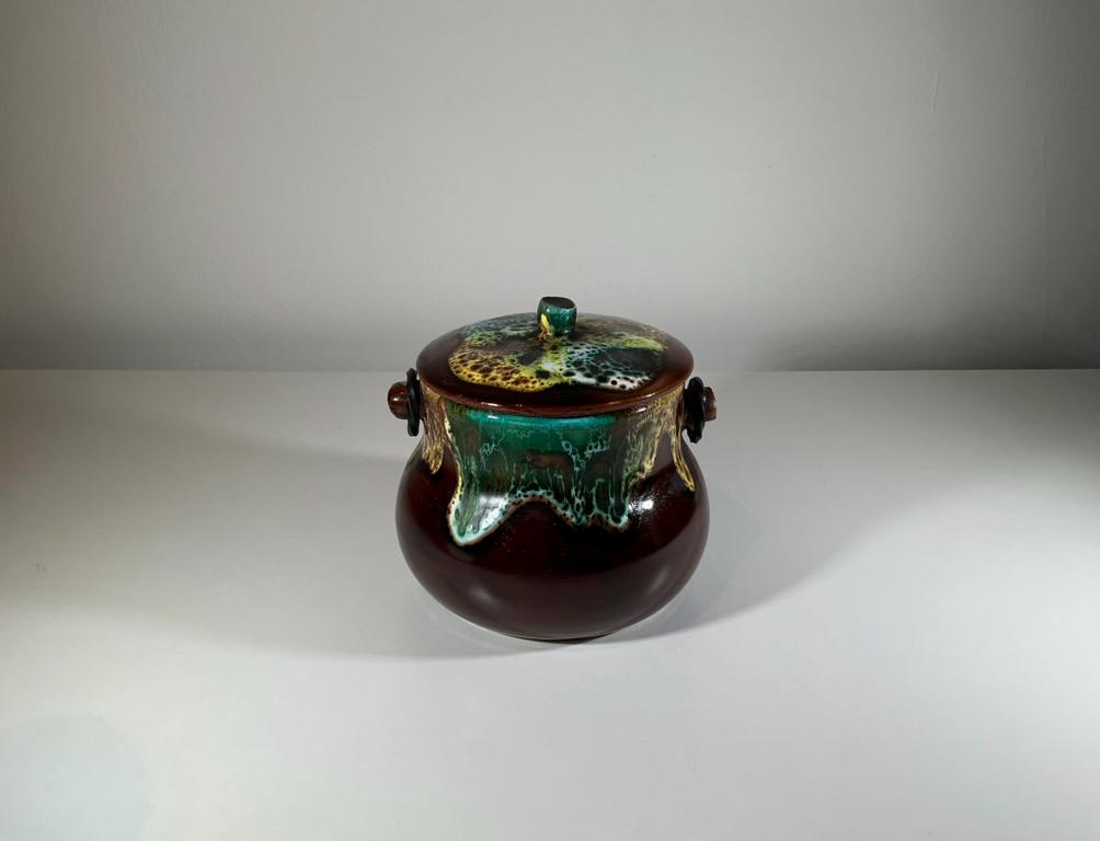 Vintage Vallauris French Pottery Bonbonnière – Brown, Green & Yellow Candy Dish