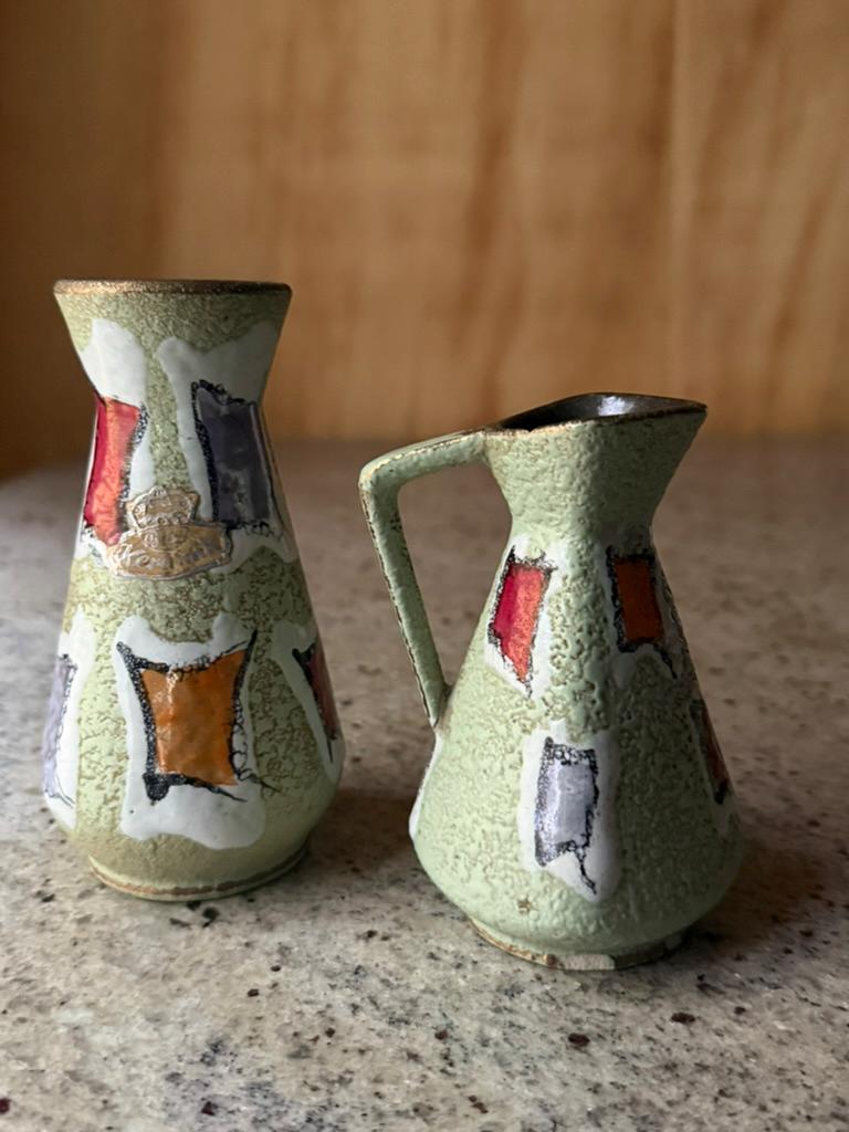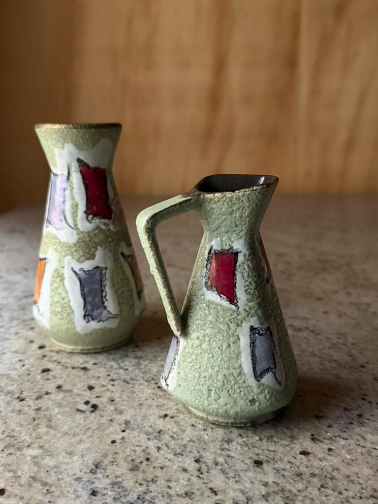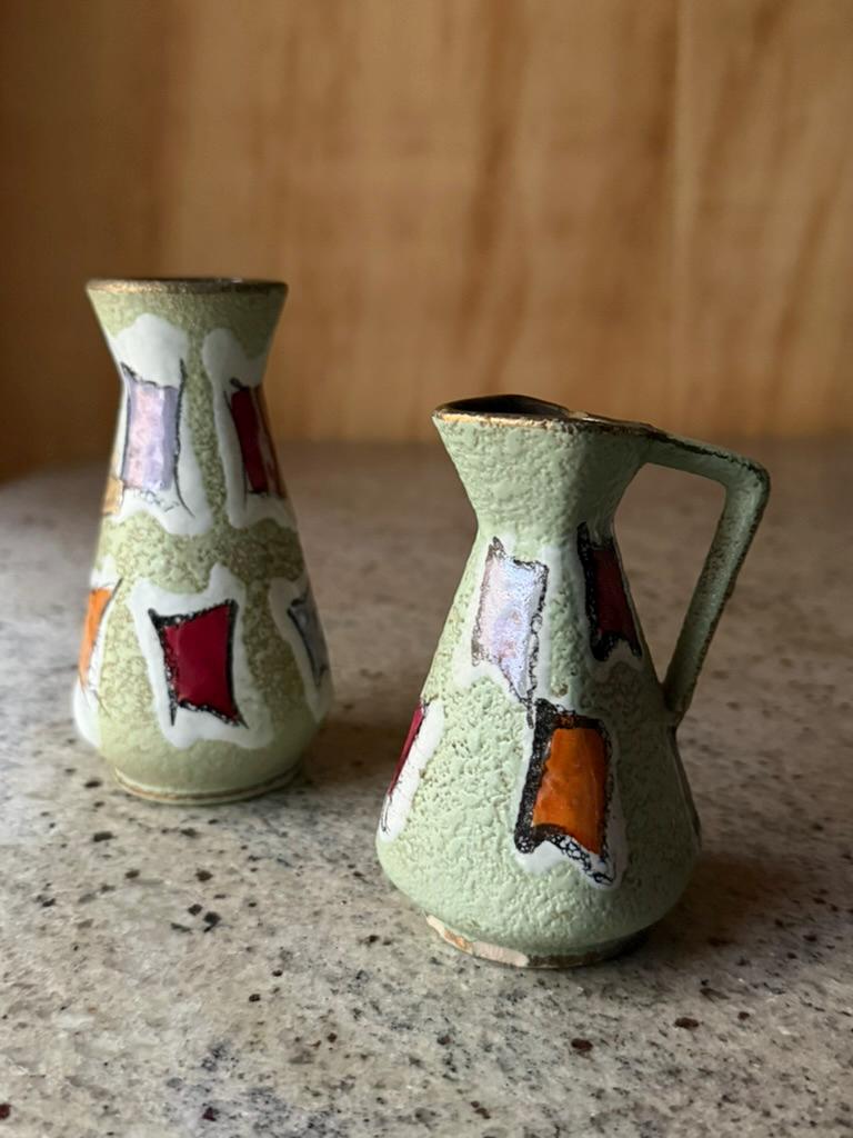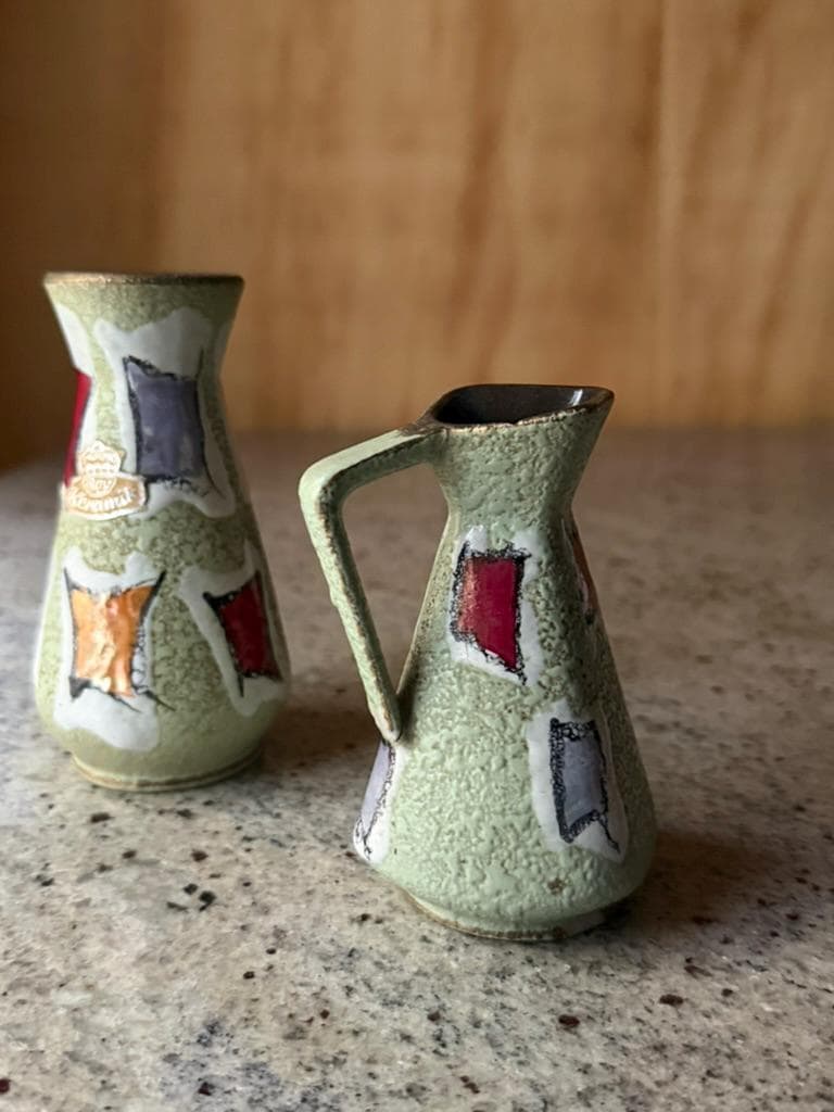 Set of Two Vintage 1970s Scheurich West Germany Miniature Vase & Jar with Original Label