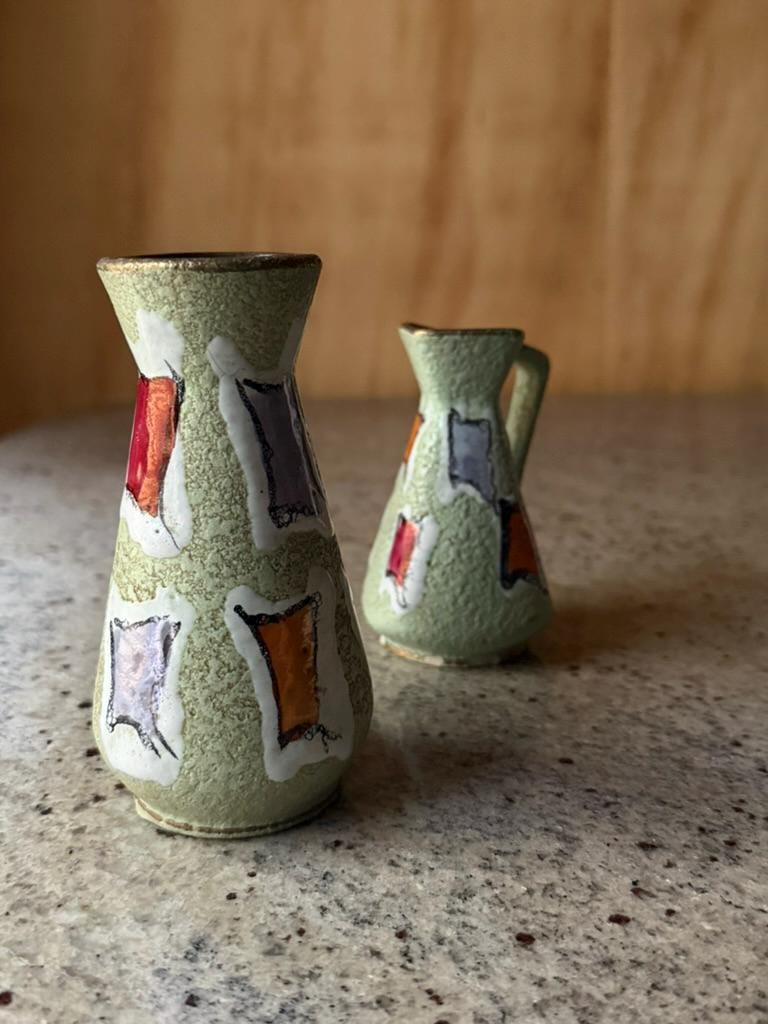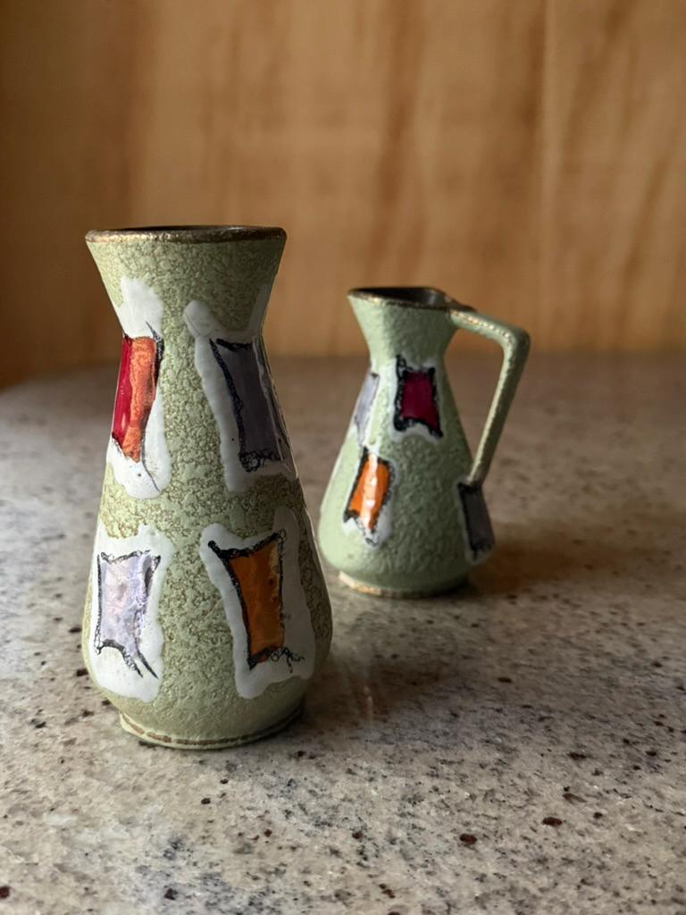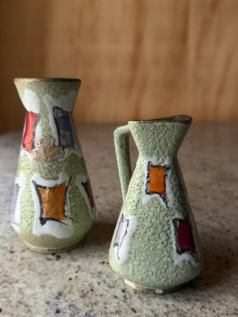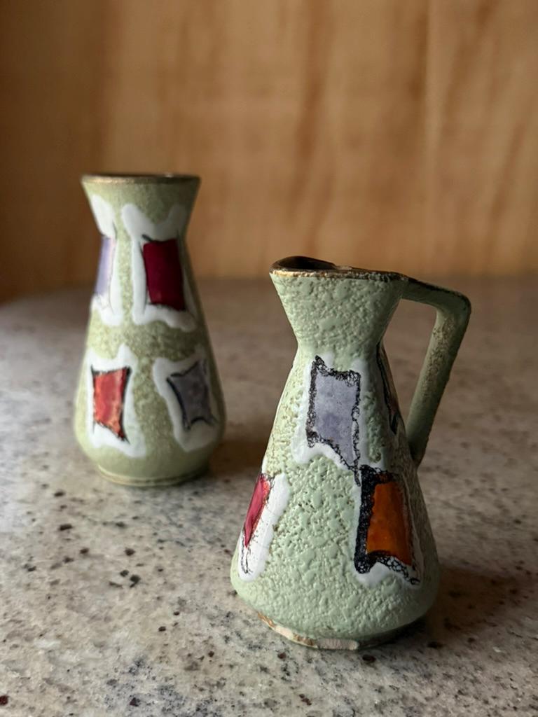 Set of Two Vintage 1970s Scheurich West Germany Miniature Vase & Jar with Original Label