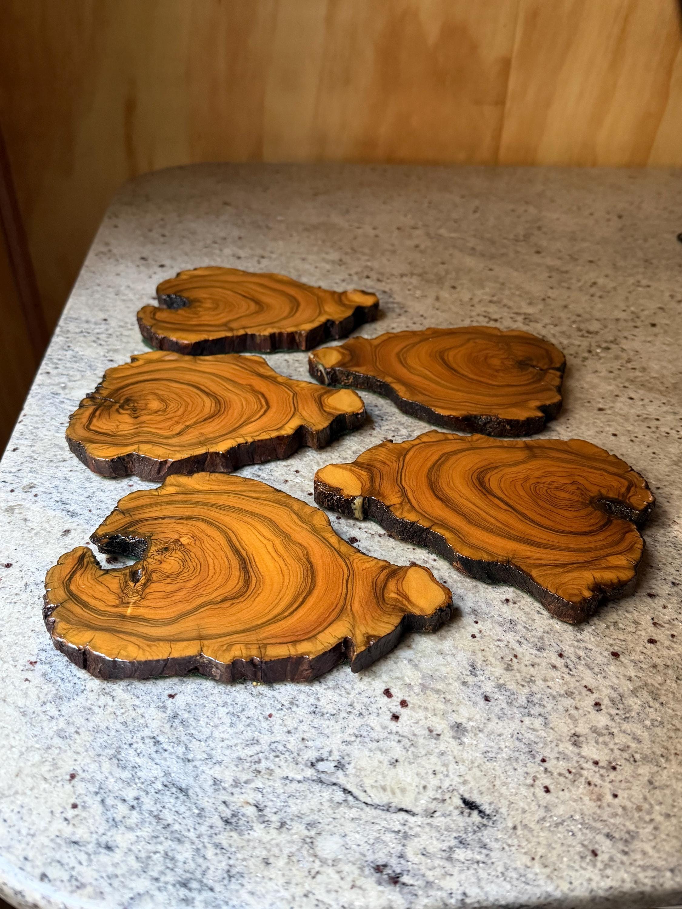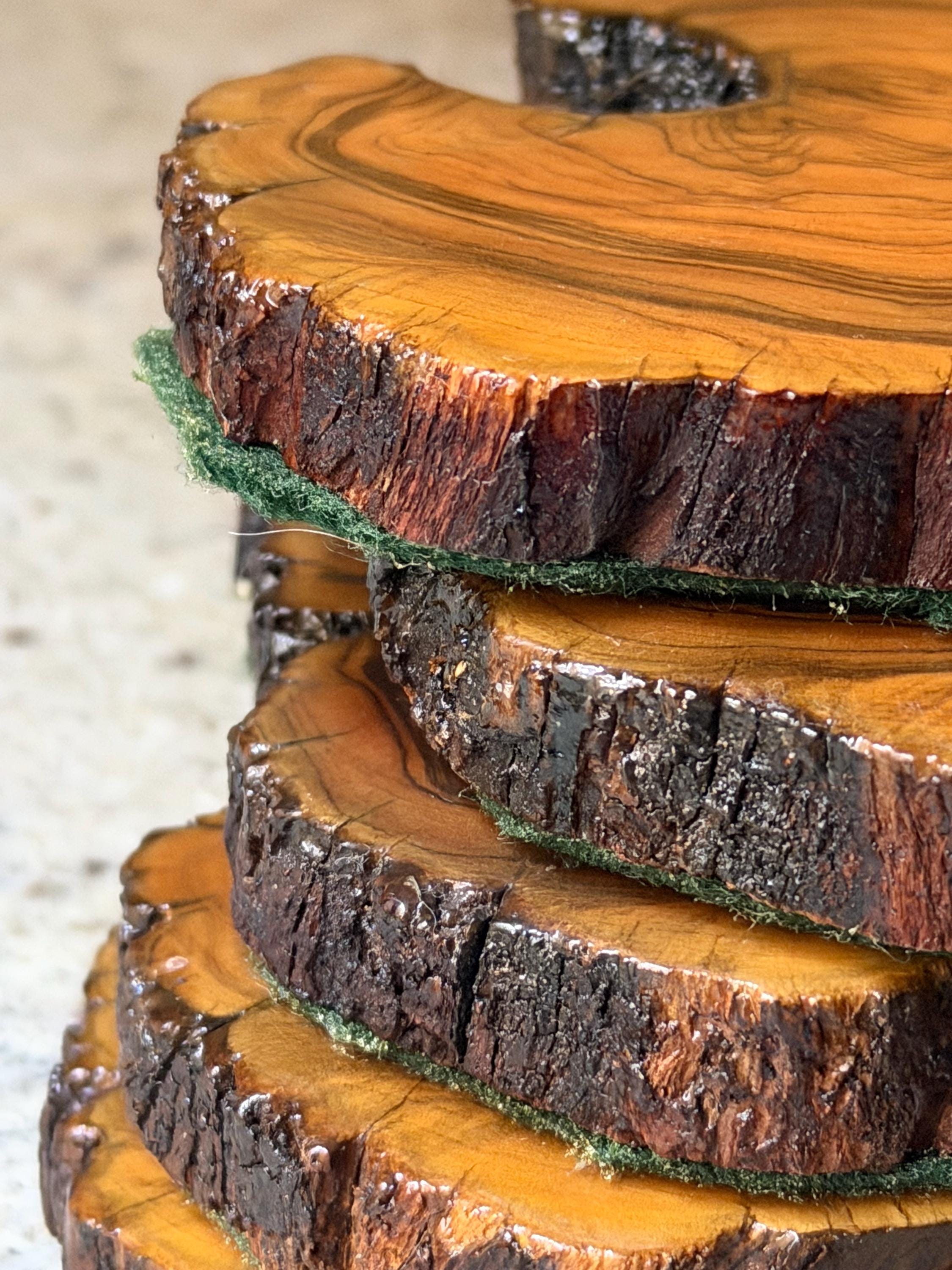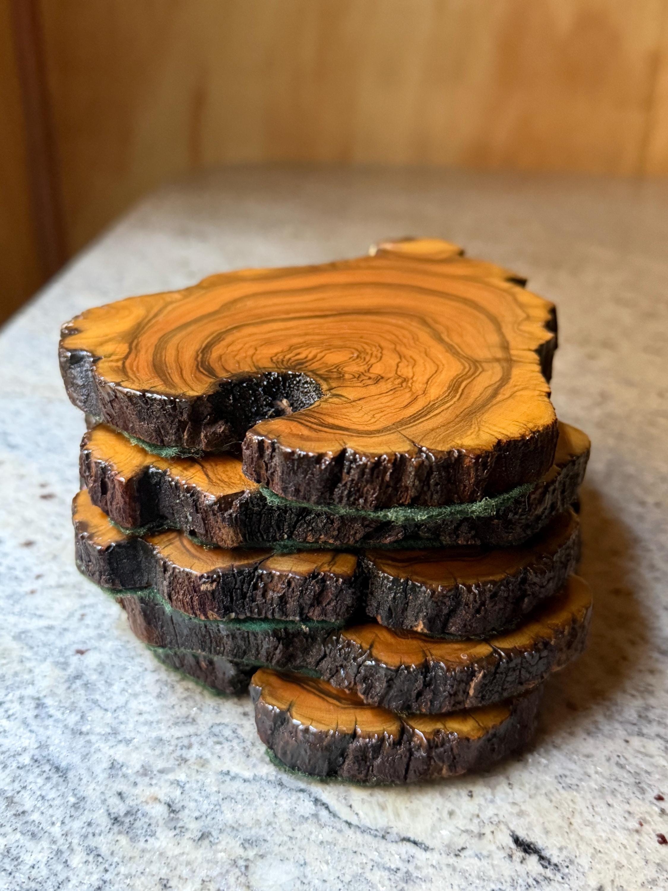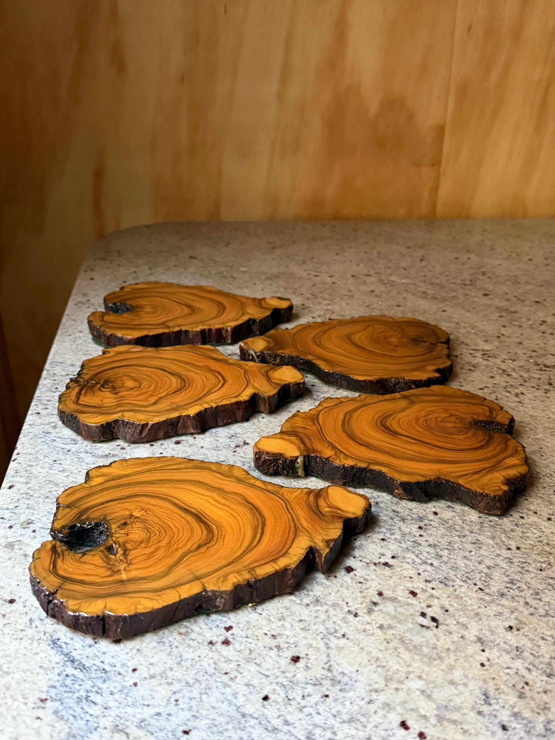 Set of 5 Rustic Wooden Coasters | Vintage Mountain Cabin Style Table Protectors