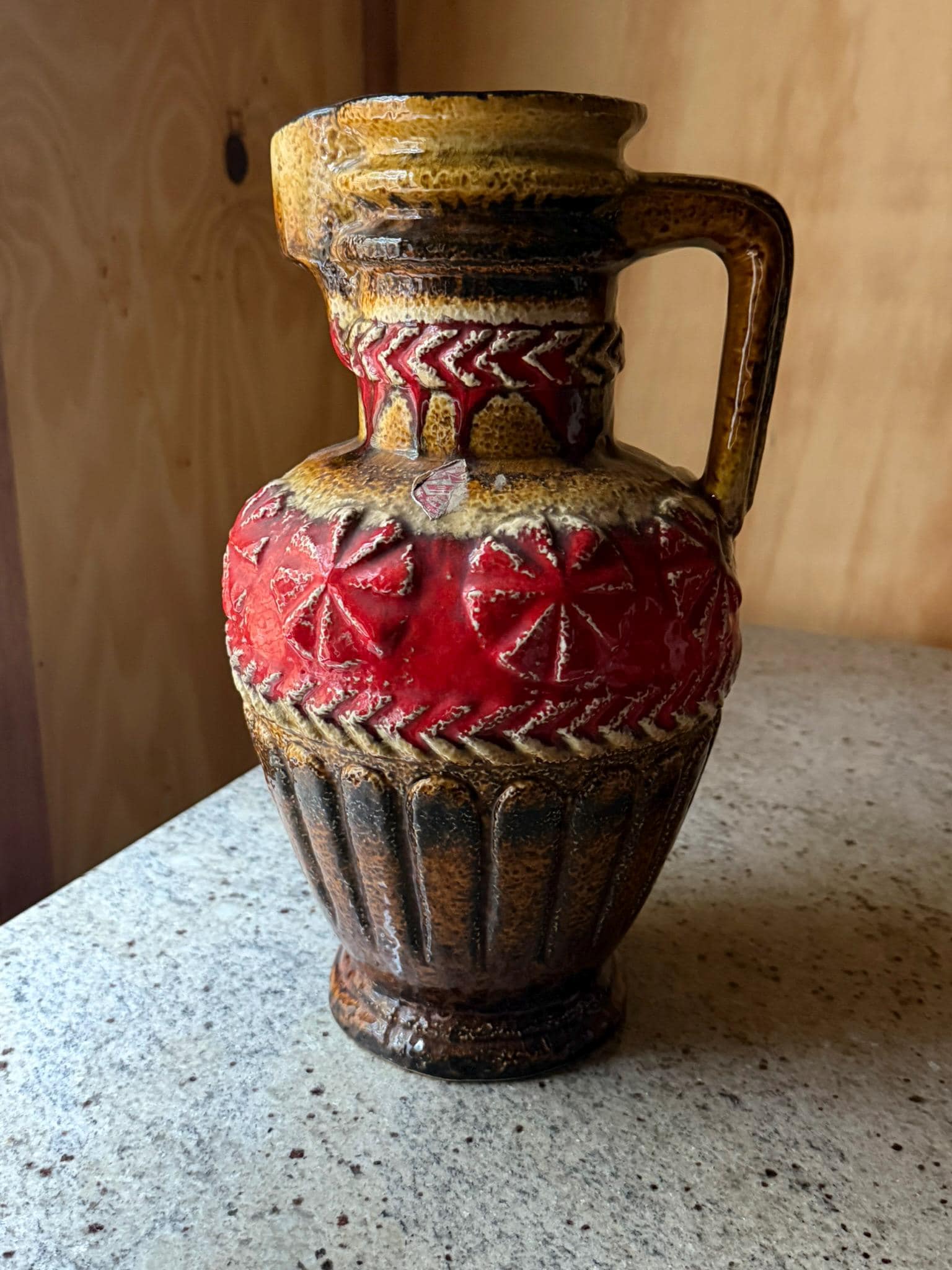 This timeless piece combines bold design with quality craftsmanship, making it a must-have for vintage pottery enthusiasts and mid-century decor lovers.