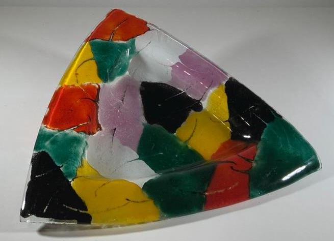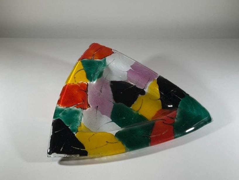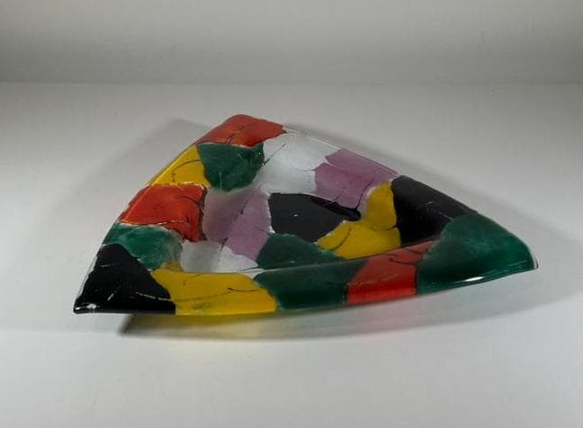Vintage Triangular Art Glass Plate | Multicolor Modernist Decorative Dish/Key Bowl/Candy Bowl