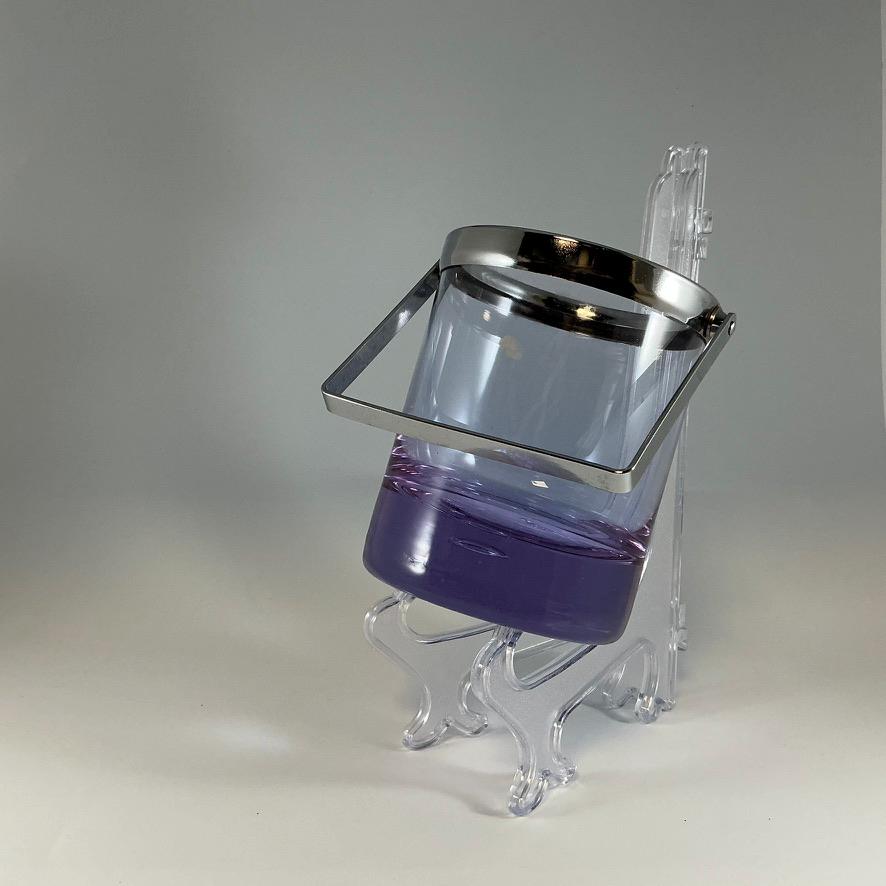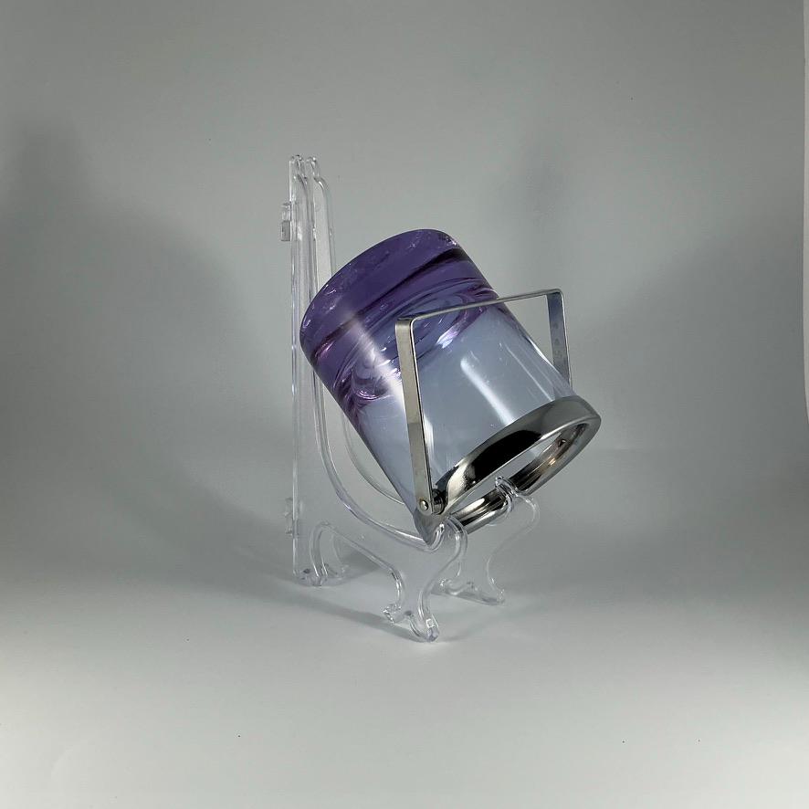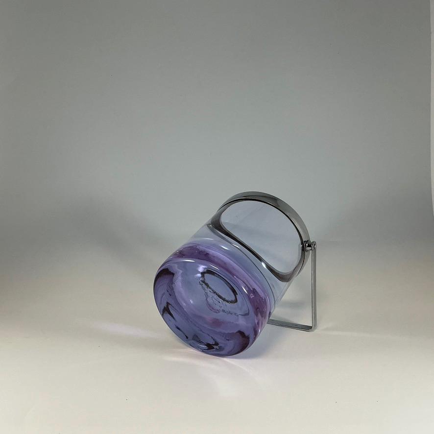 Bring elegance and a touch of magic to your bar with this stunning alexandrite crystal ice bucket. Handcrafted in Bohemia, this mouth-blown glass showcases the unique color-changing property of alexandrite: in natural daylight, it appears a soft lavender, while under artificial light it shifts toward cool blue or pink tones.