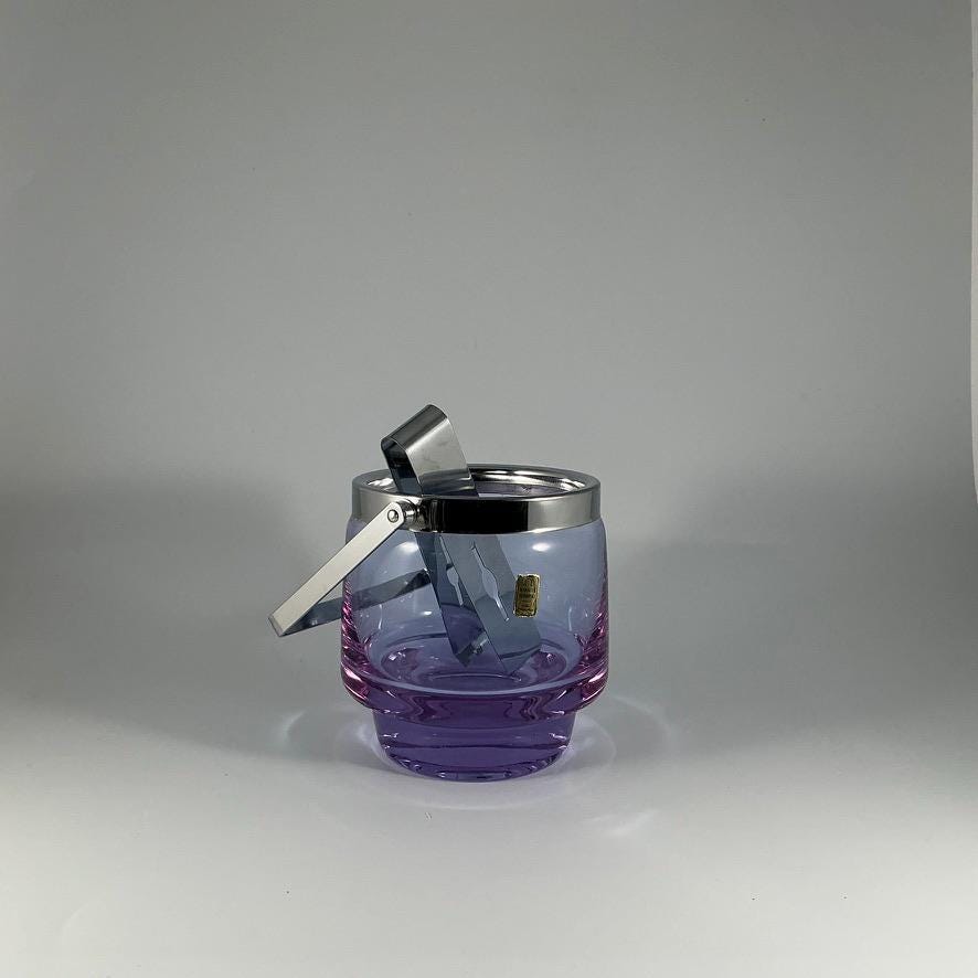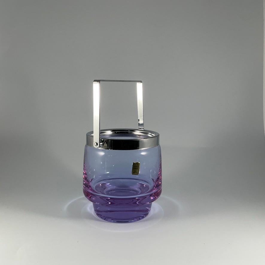 Bohemian Alexandrite Crystal Ice Bucket – Color-Changing Mouth-Blown Glass – Mid-Century Modern Barware