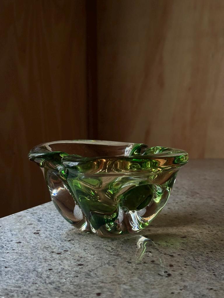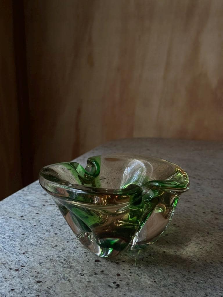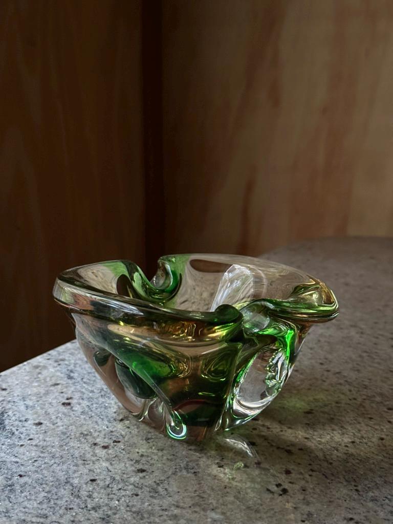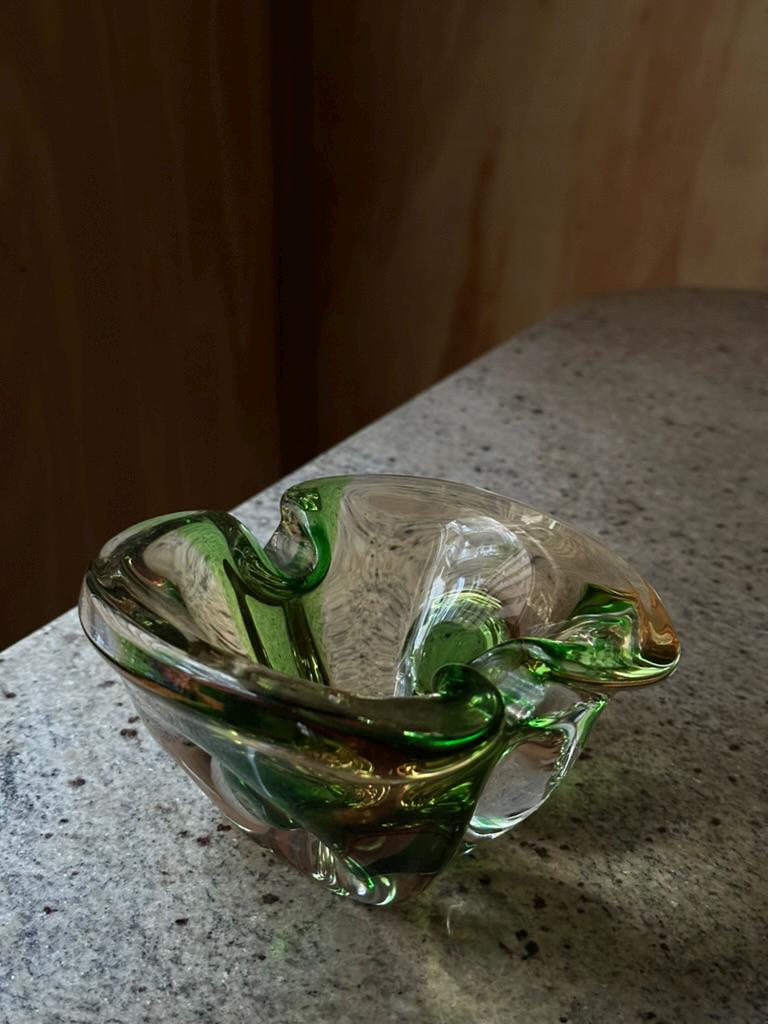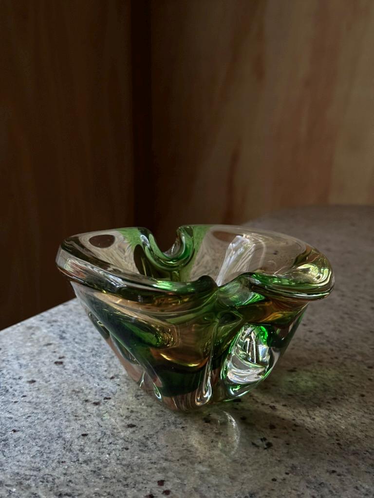 Green Sommerso Art Glass Ashtray • Mid-Century Modern Bowl