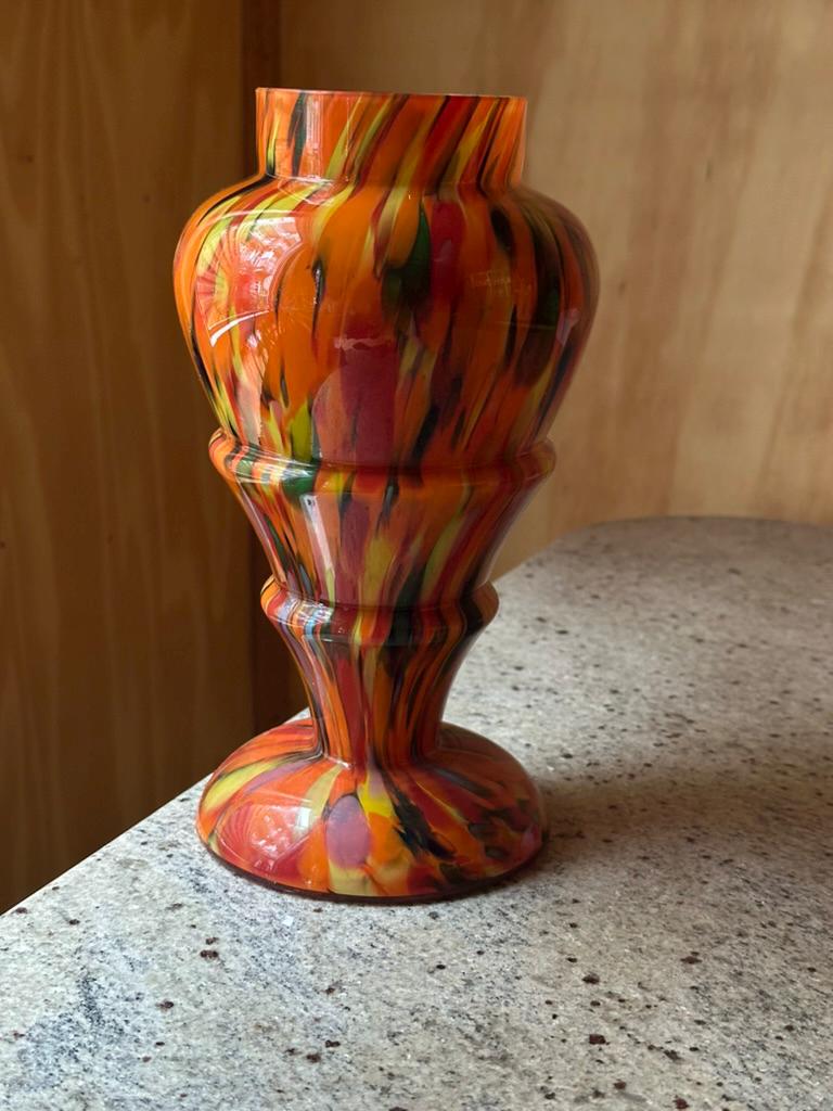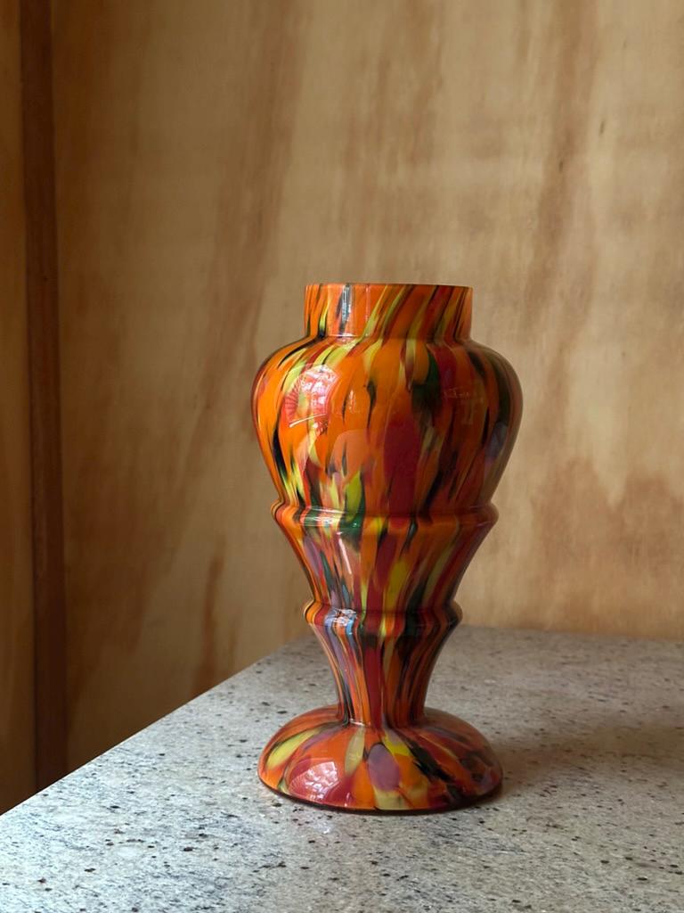 Antique Bohemian Kralik Baluster Vase — Multicolored Splatter “End of Day” Glass | Fire Decor