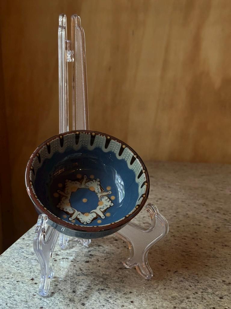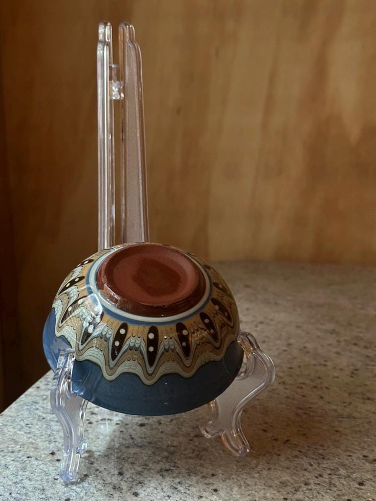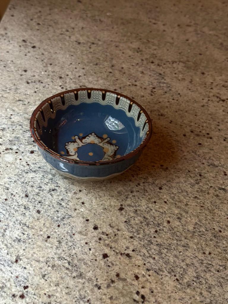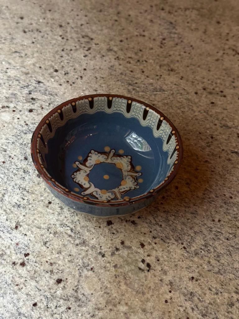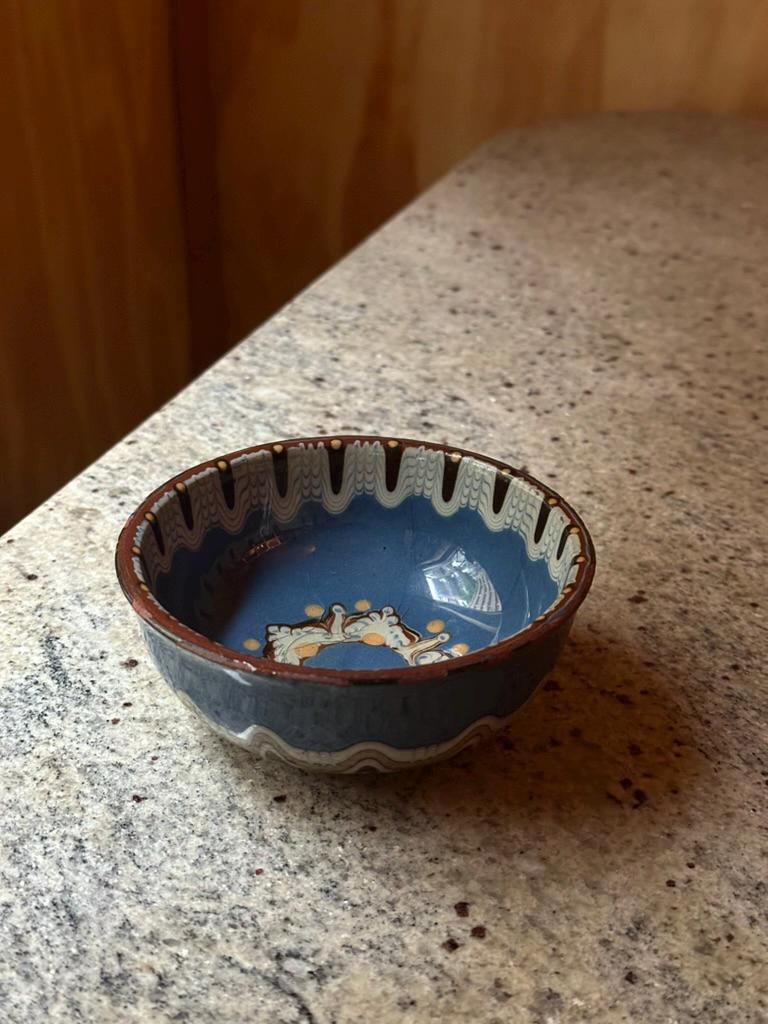 Handcrafted Blue Glazed Romanian Folk Pottery Bowl — Ceramic, 1970s–1990s