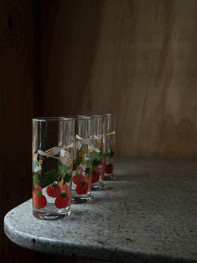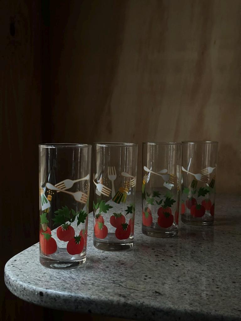 Bring a touch of playful cucina italiana to your table with this set of four vintage glasses.