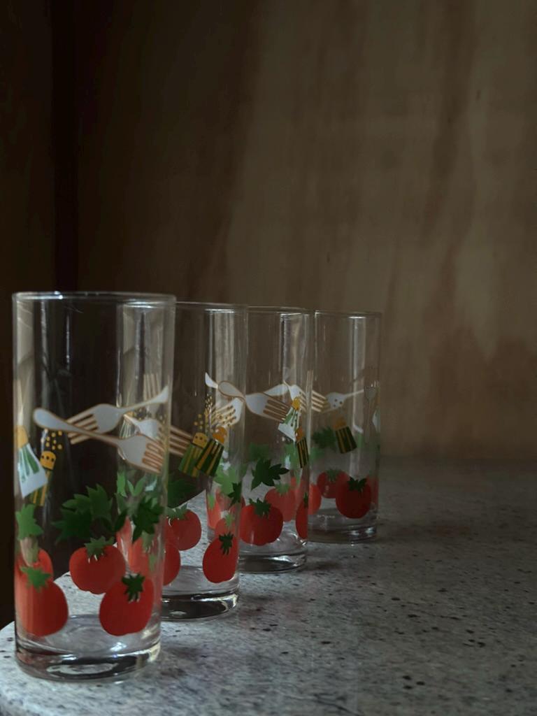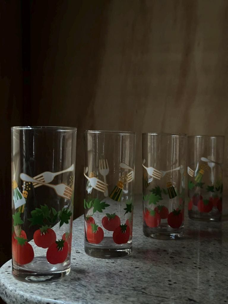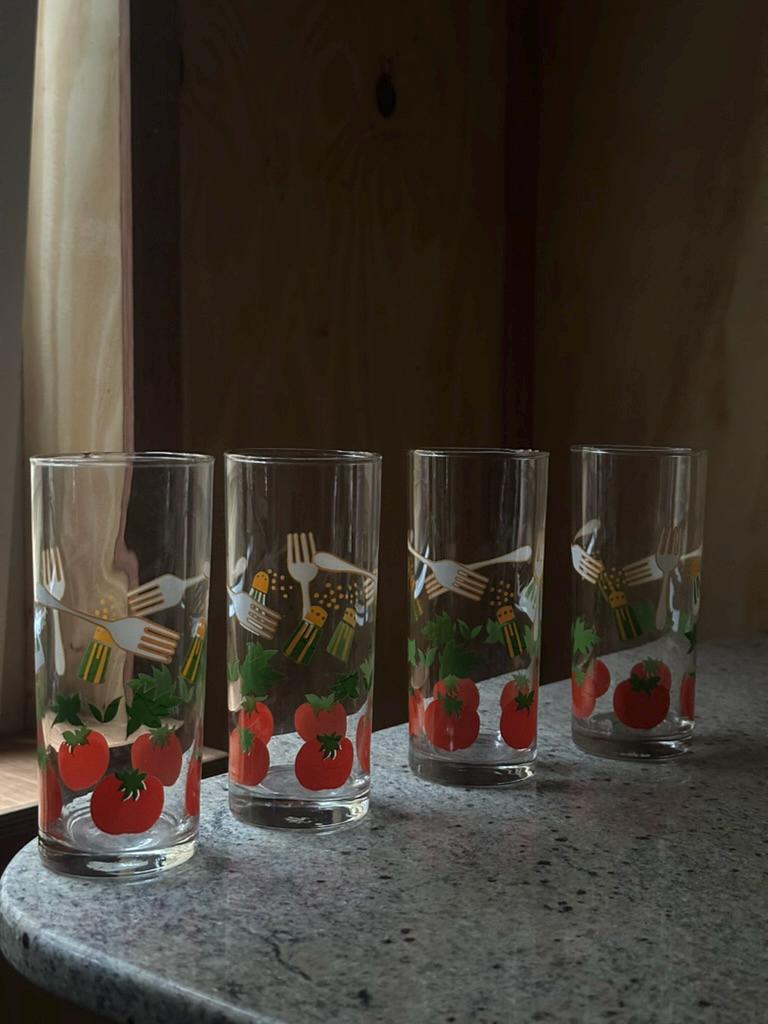 Vintage Italian Tomato & Herb tumblers — Set of 4 Glasses