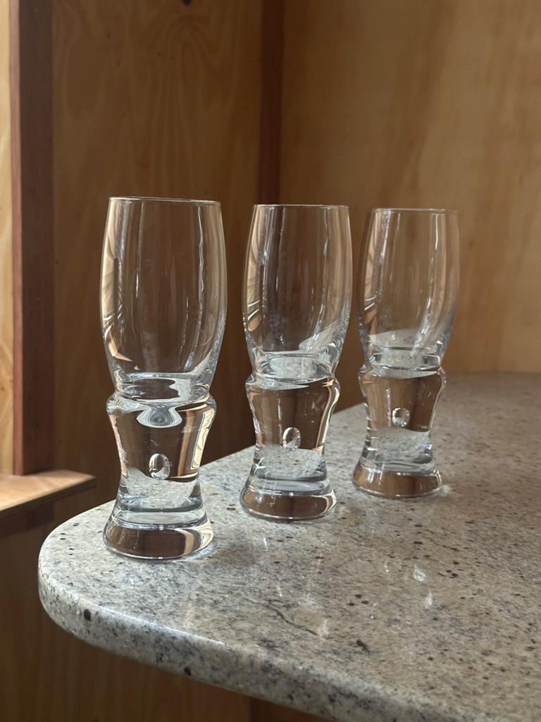 These pieces reflect classic Italian craftsmanship: hand-worked bases, sommerso-influenced bubble details, and beautifully balanced proportions. A refined addition to any modern bar, mid-century interior, or glassware collection.