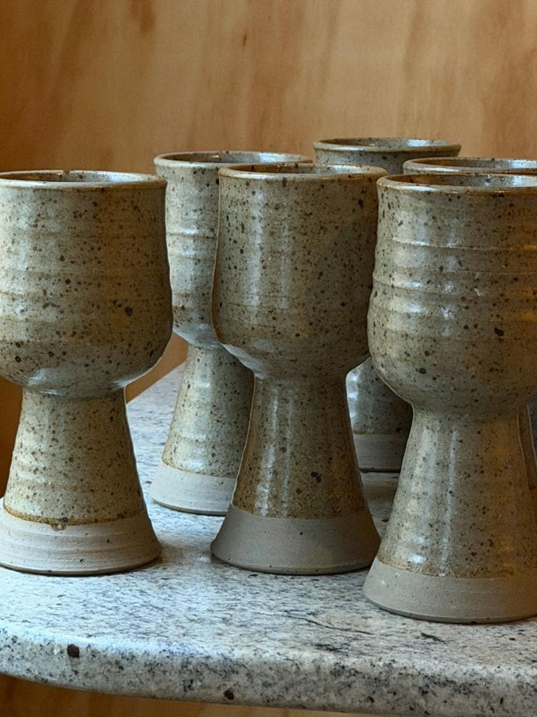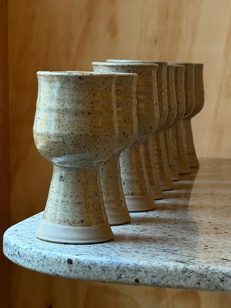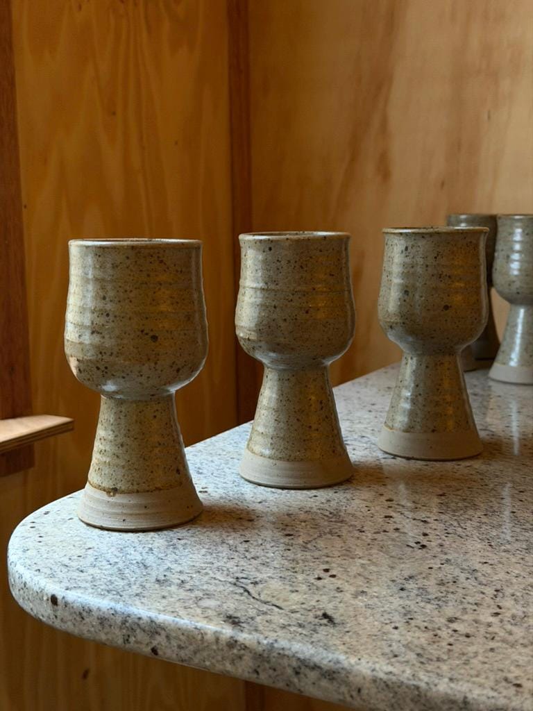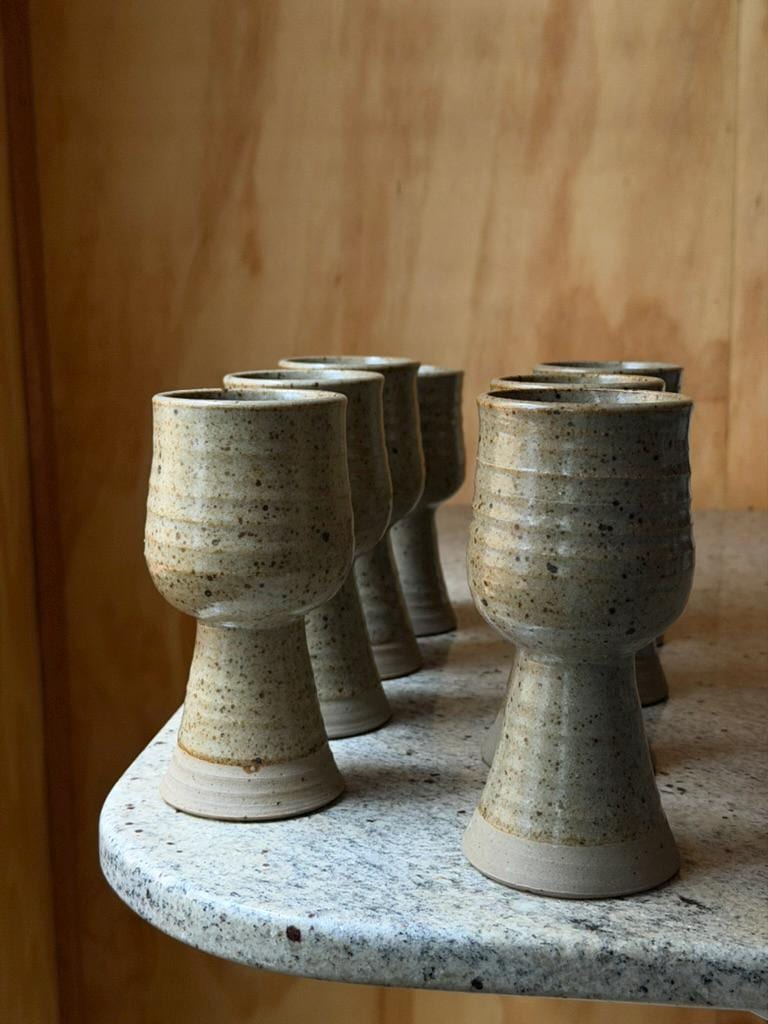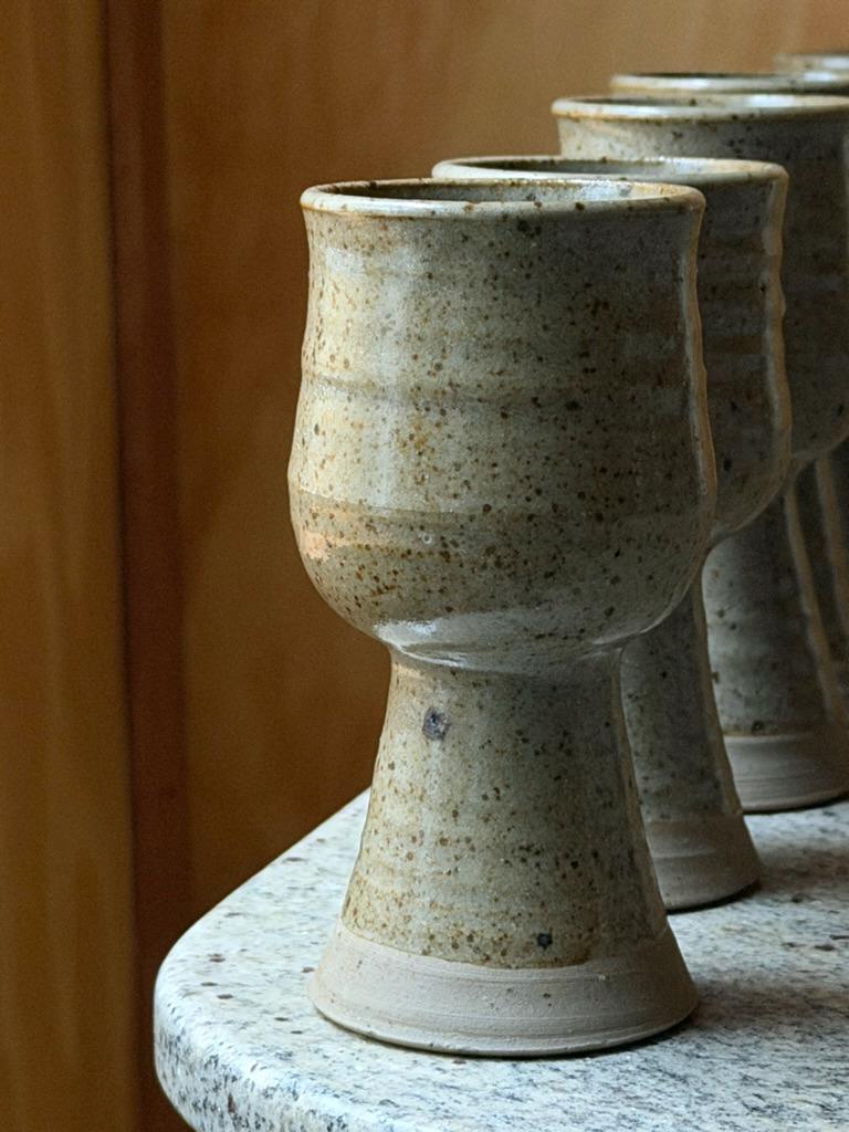 Each goblet is individually handmade. A small variation in height and shape exists between pieces. This is intentional and reflects the nature of handmade pottery, not a defect. The set is cohesive while each piece remains unique.