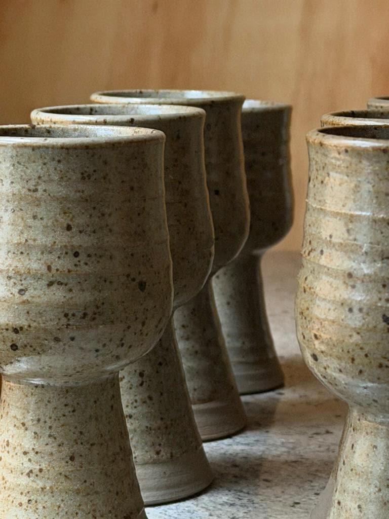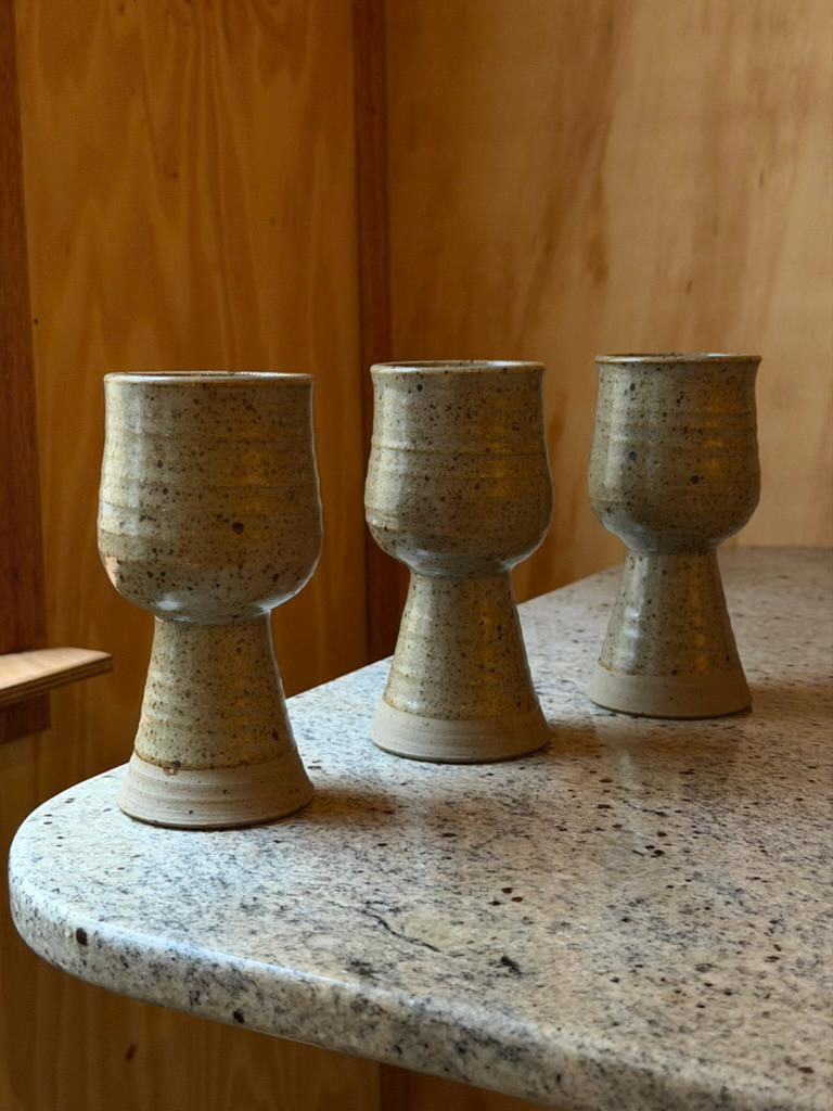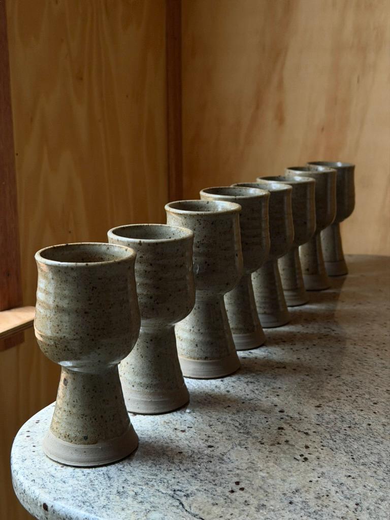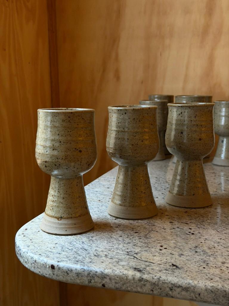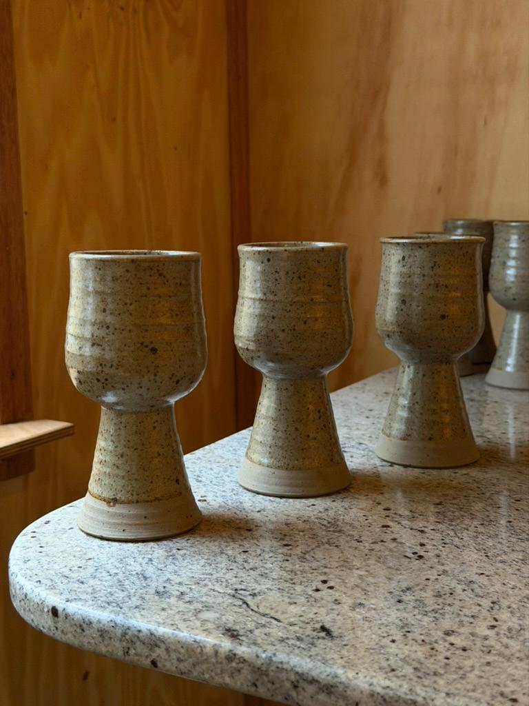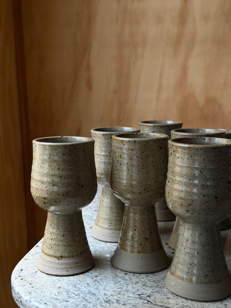 Each goblet is individually handmade. A small variation in height and shape exists between pieces. This is intentional and reflects the nature of handmade pottery, not a defect. The set is cohesive while each piece remains unique.