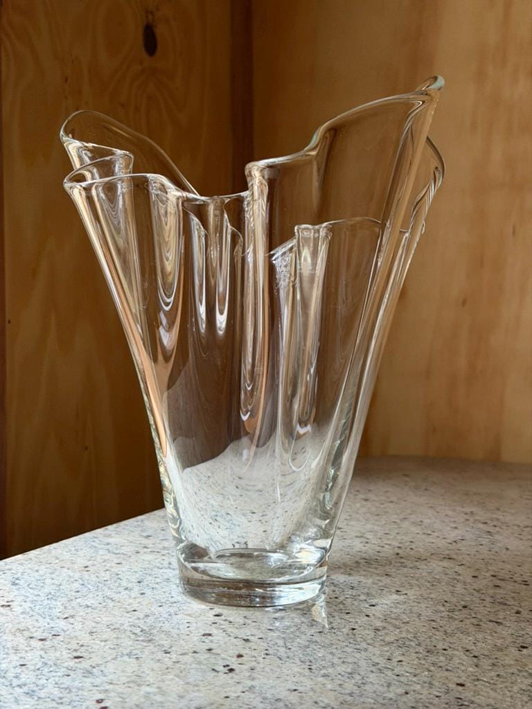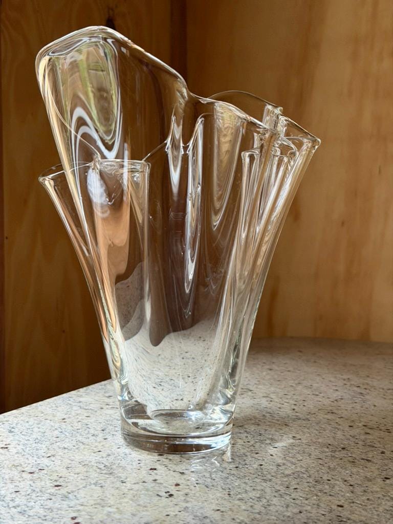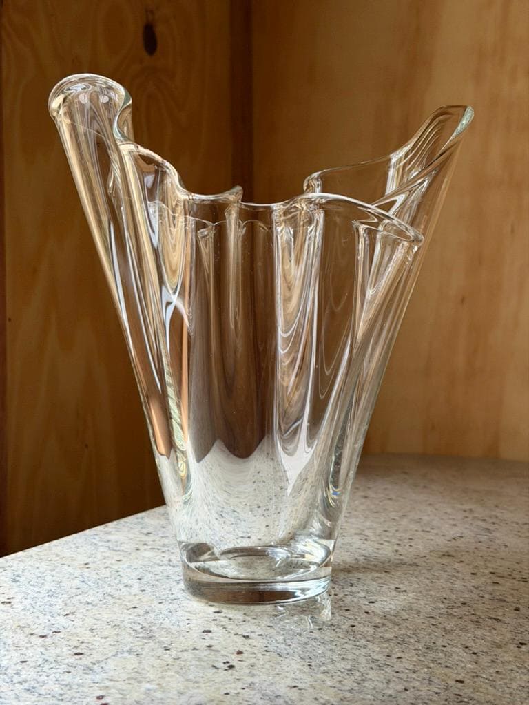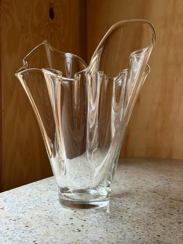Soft, flowing, and beautifully sculptural — this vintage handkerchief vase looks like fabric caught mid-air and frozen in glass.