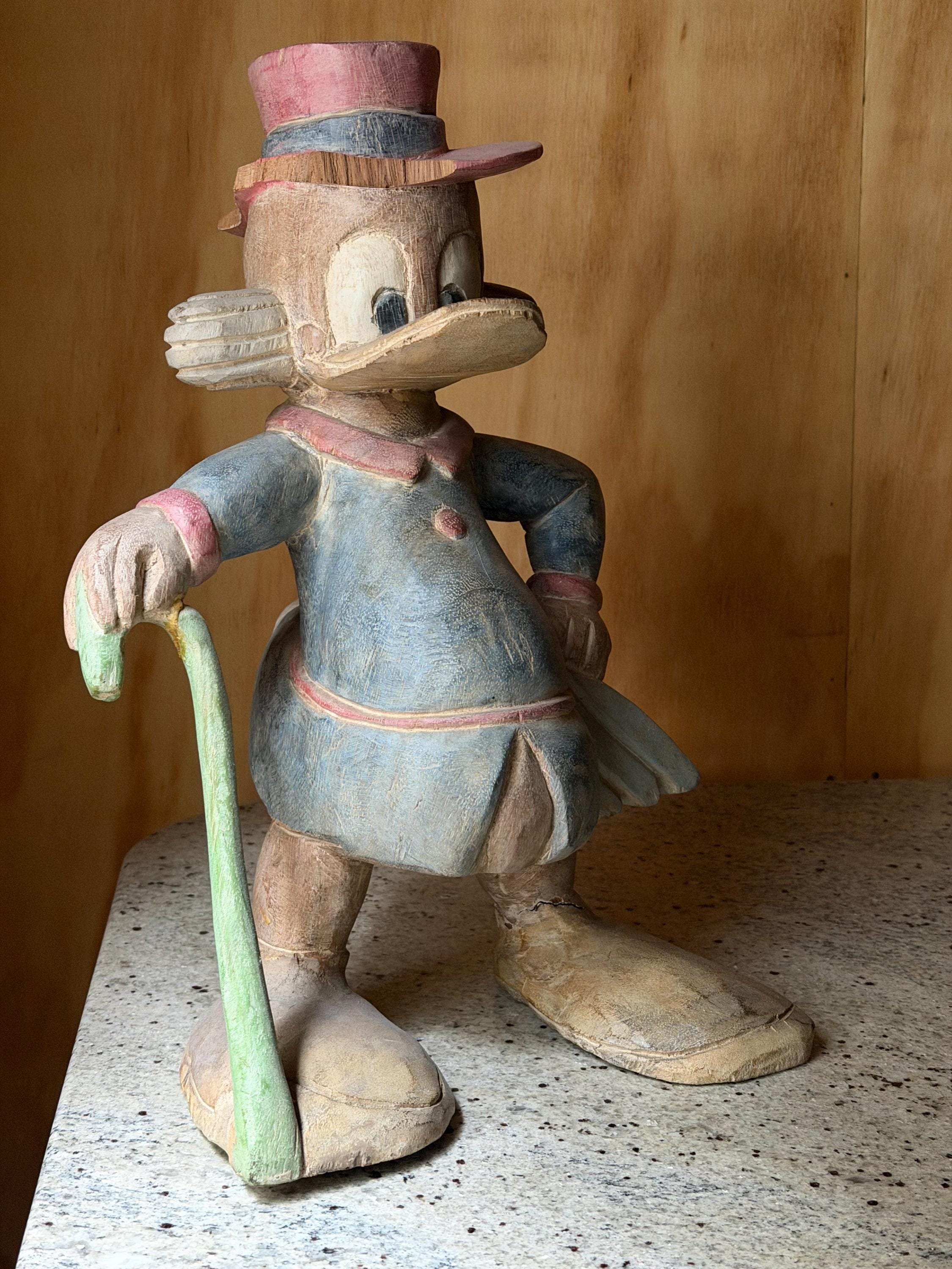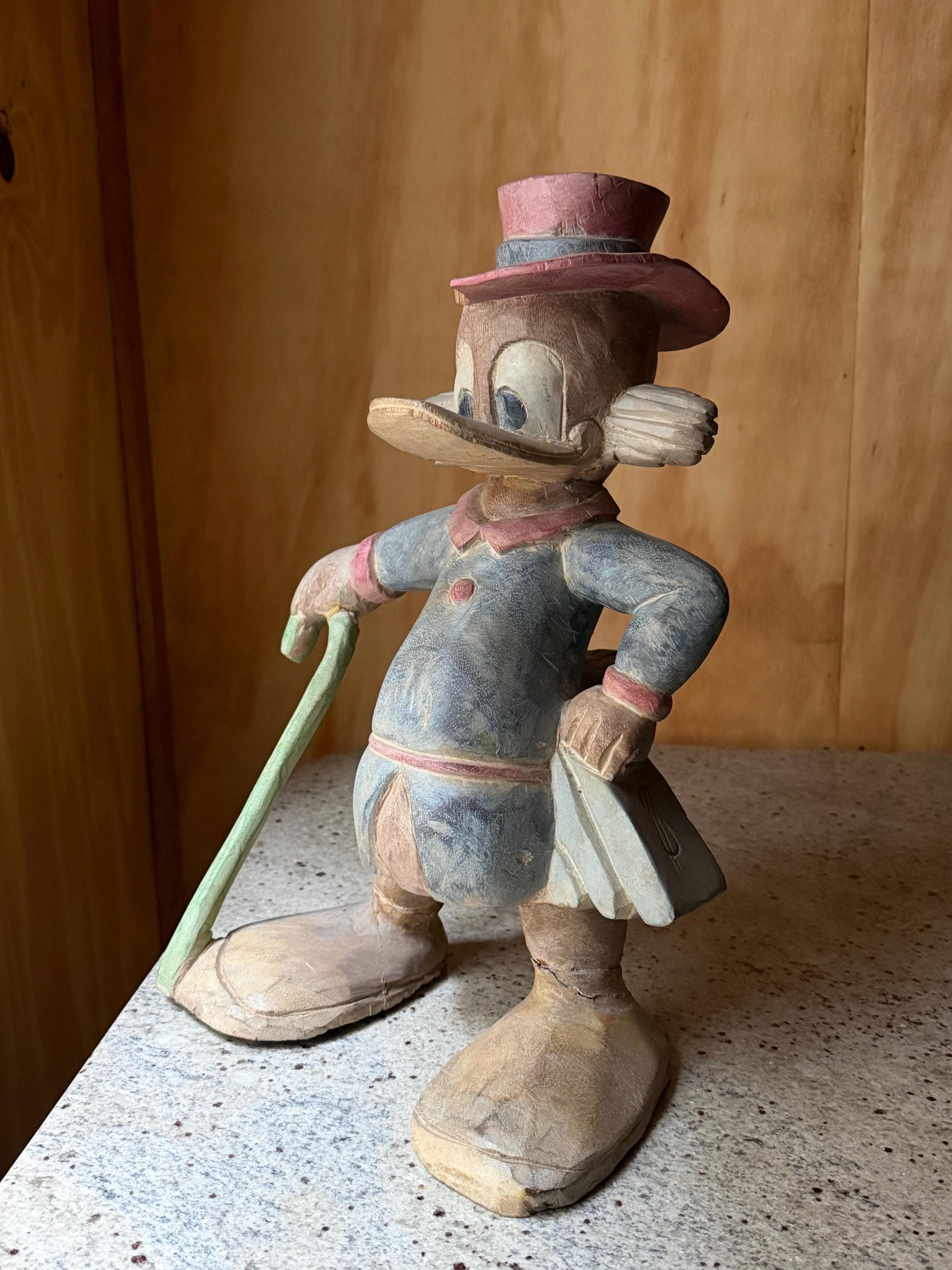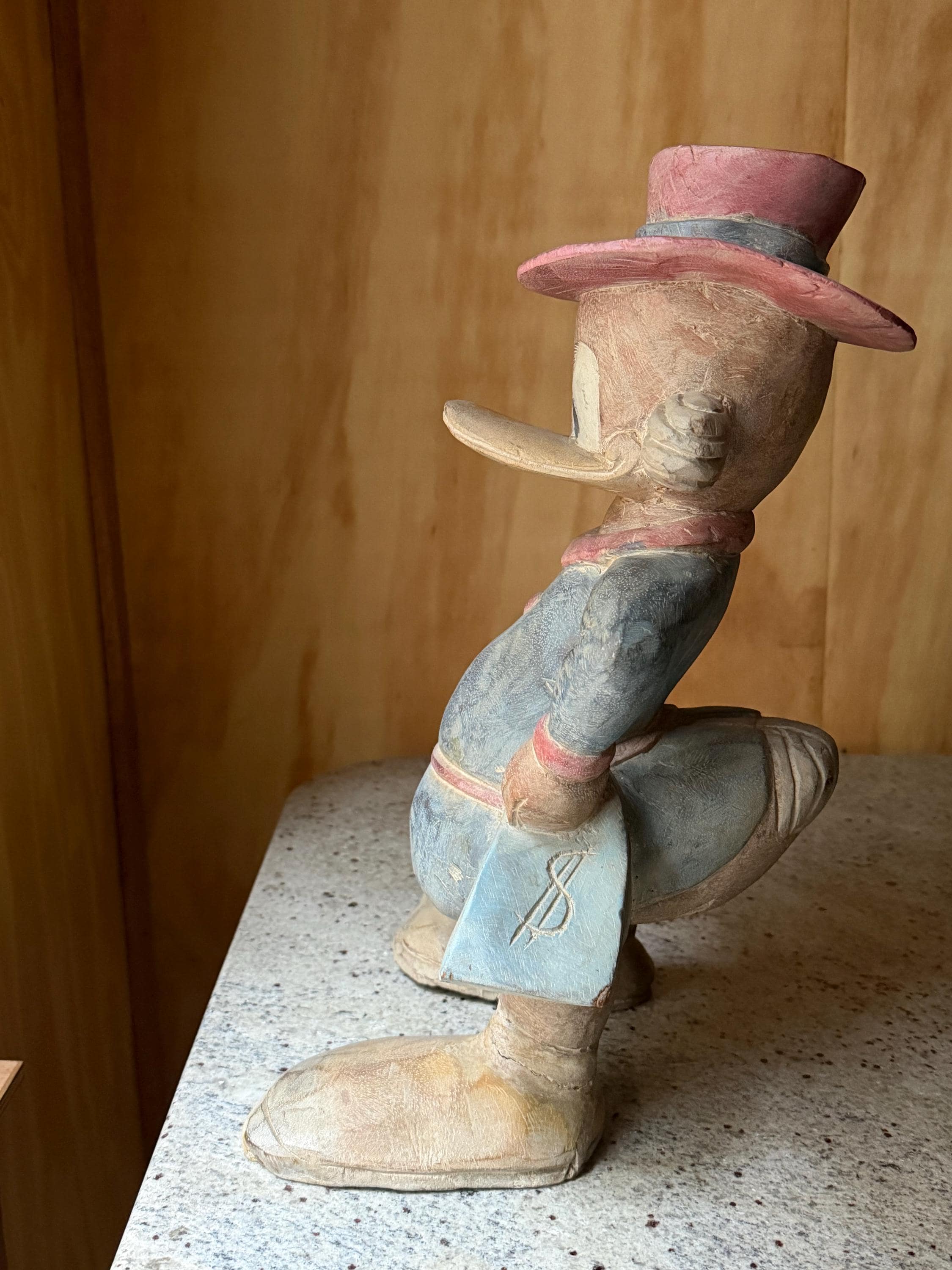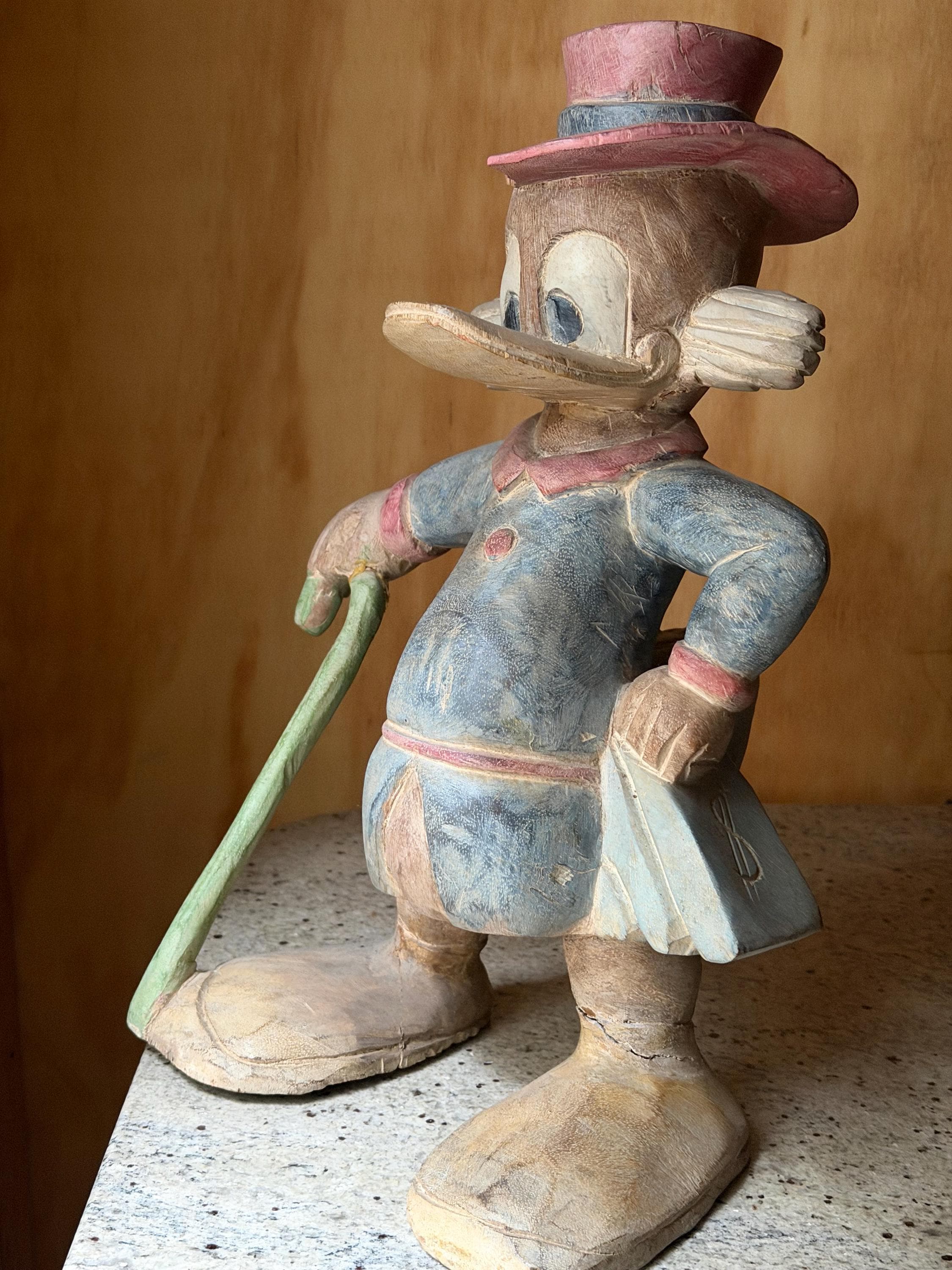 Large Disney Vintage Wooden Scrooge McDuck Figurine – Hand-Carved Disney Character Statue – Rustic Hand Painted Collector Decor
