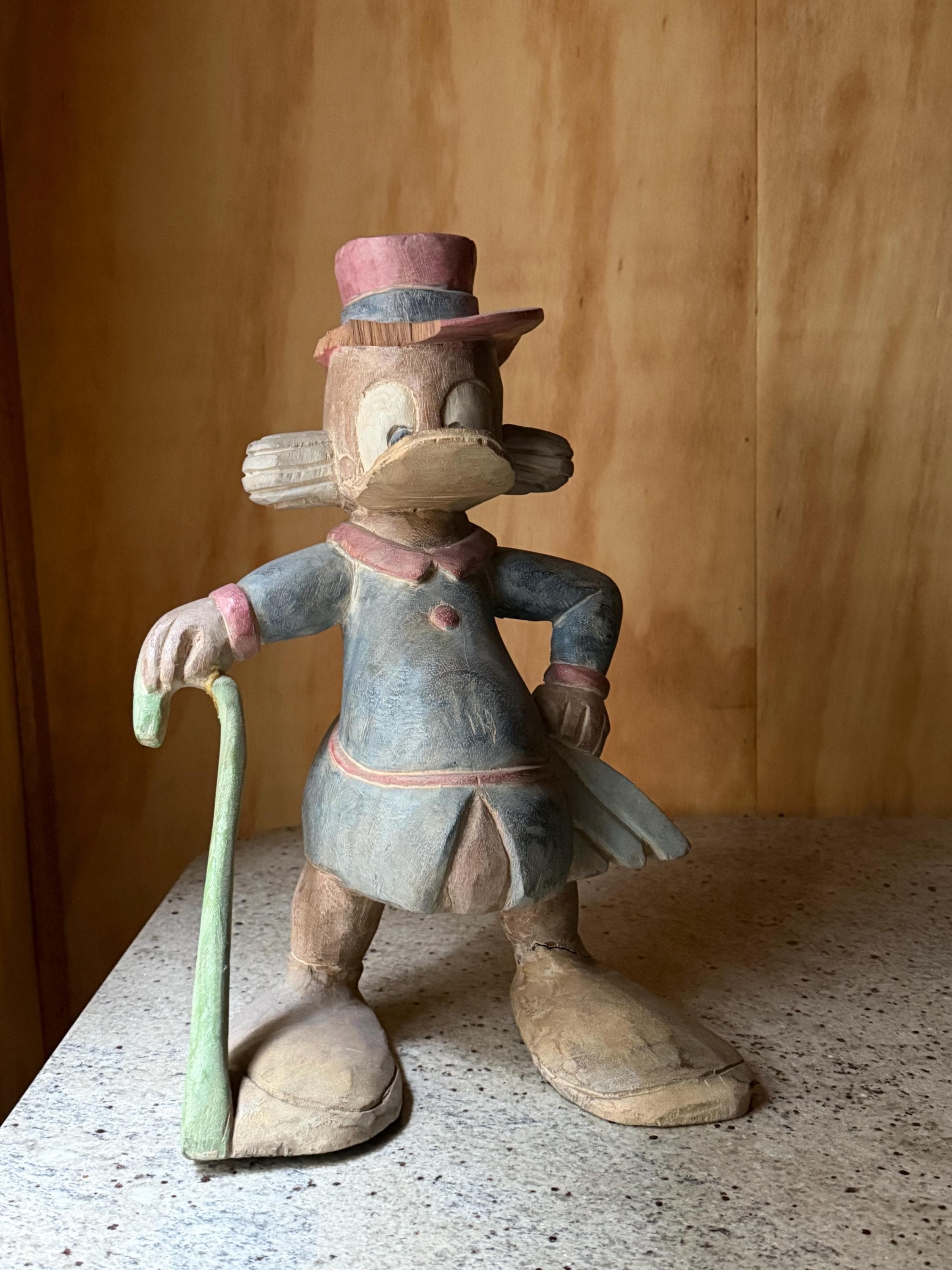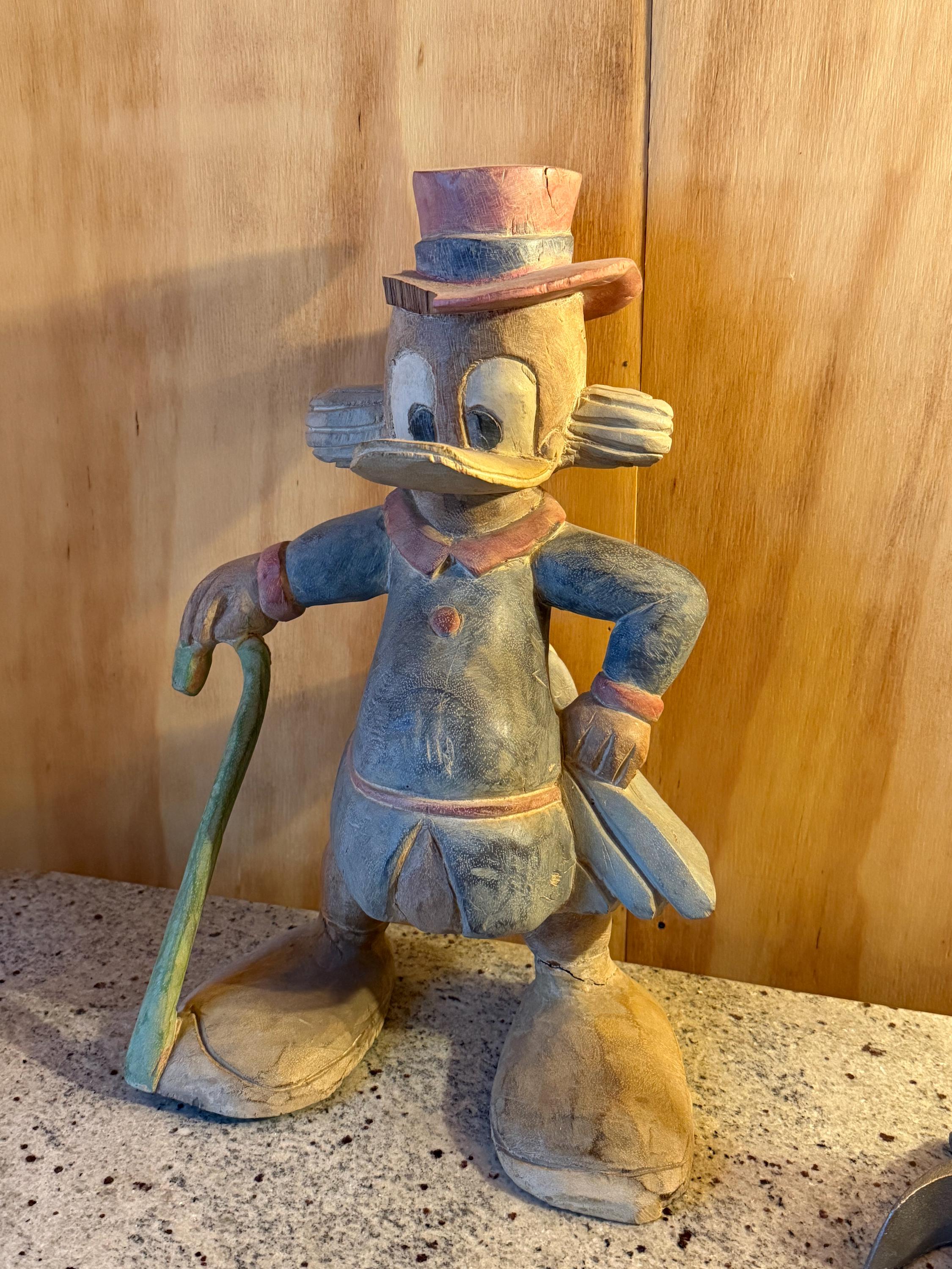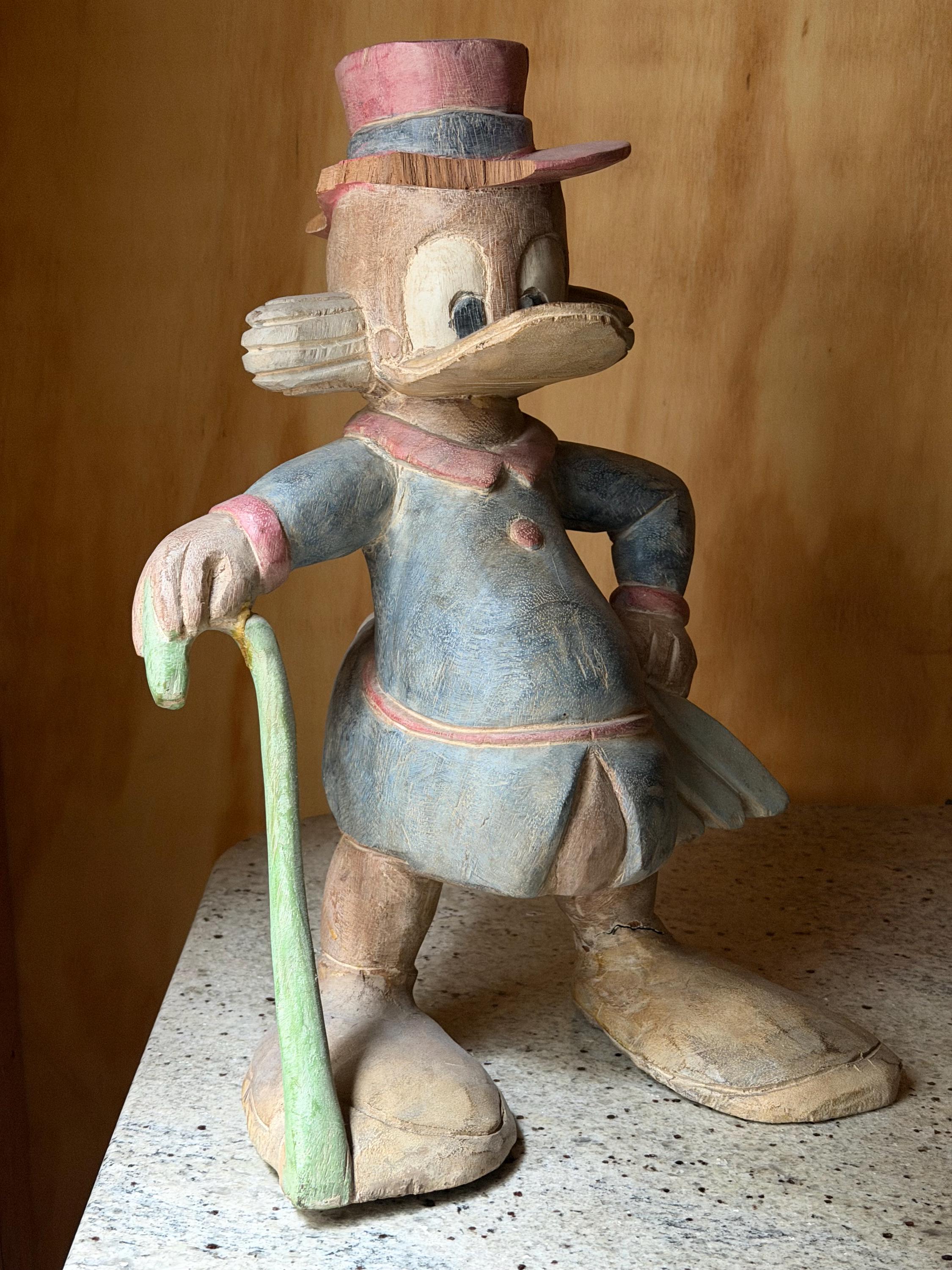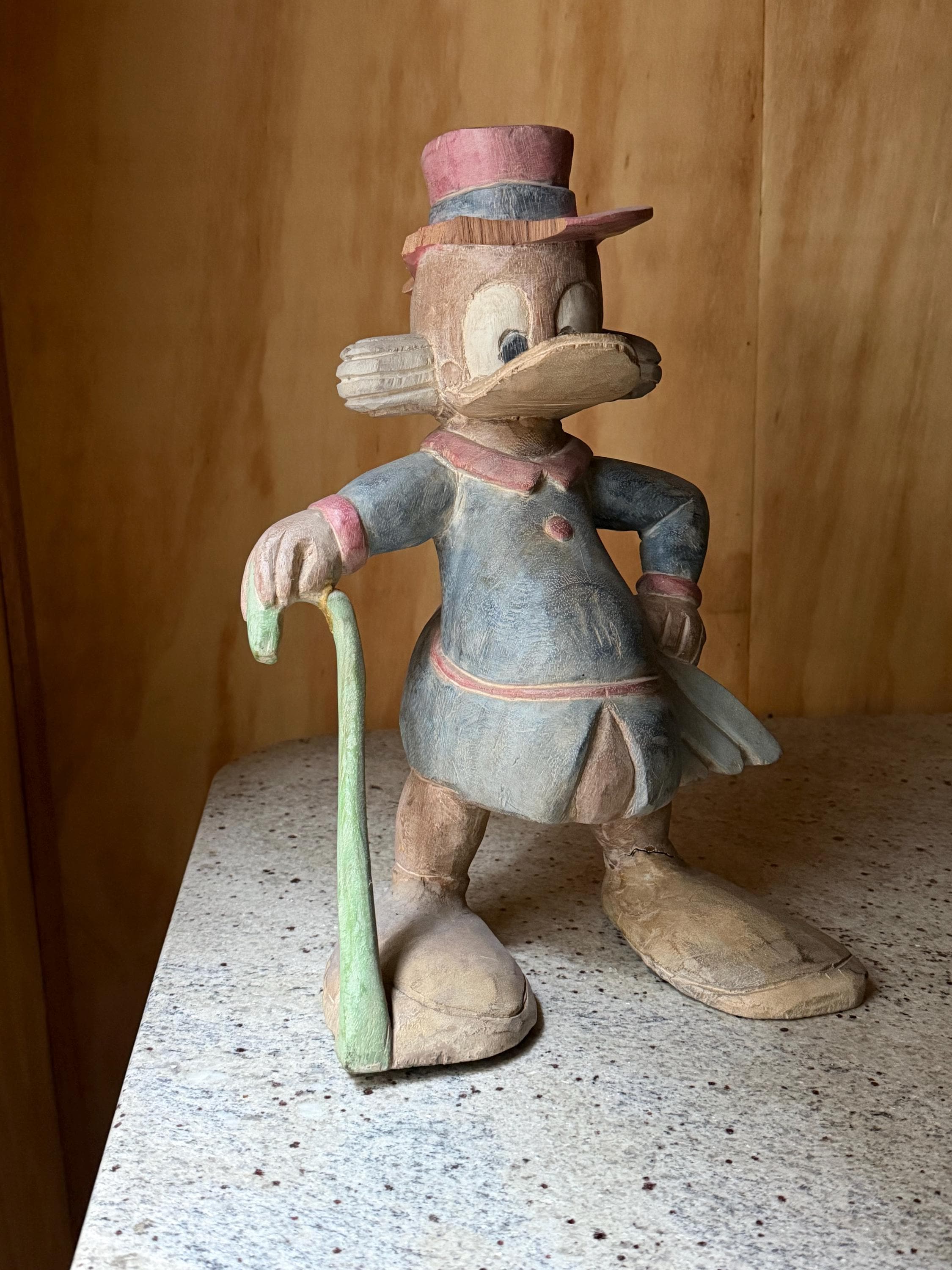 Large Disney Vintage Wooden Scrooge McDuck Figurine – Hand-Carved Disney Character Statue – Rustic Hand Painted Collector Decor