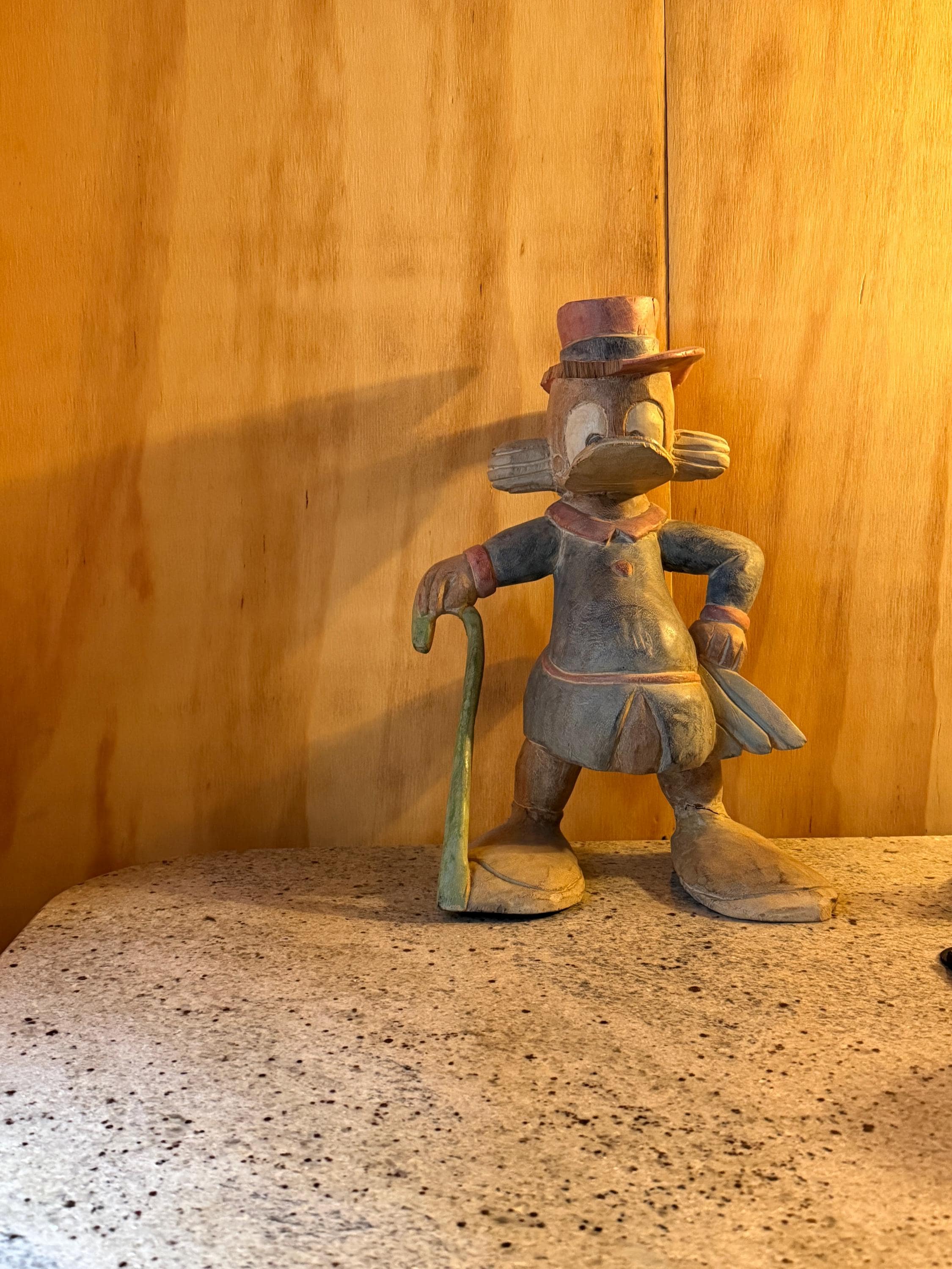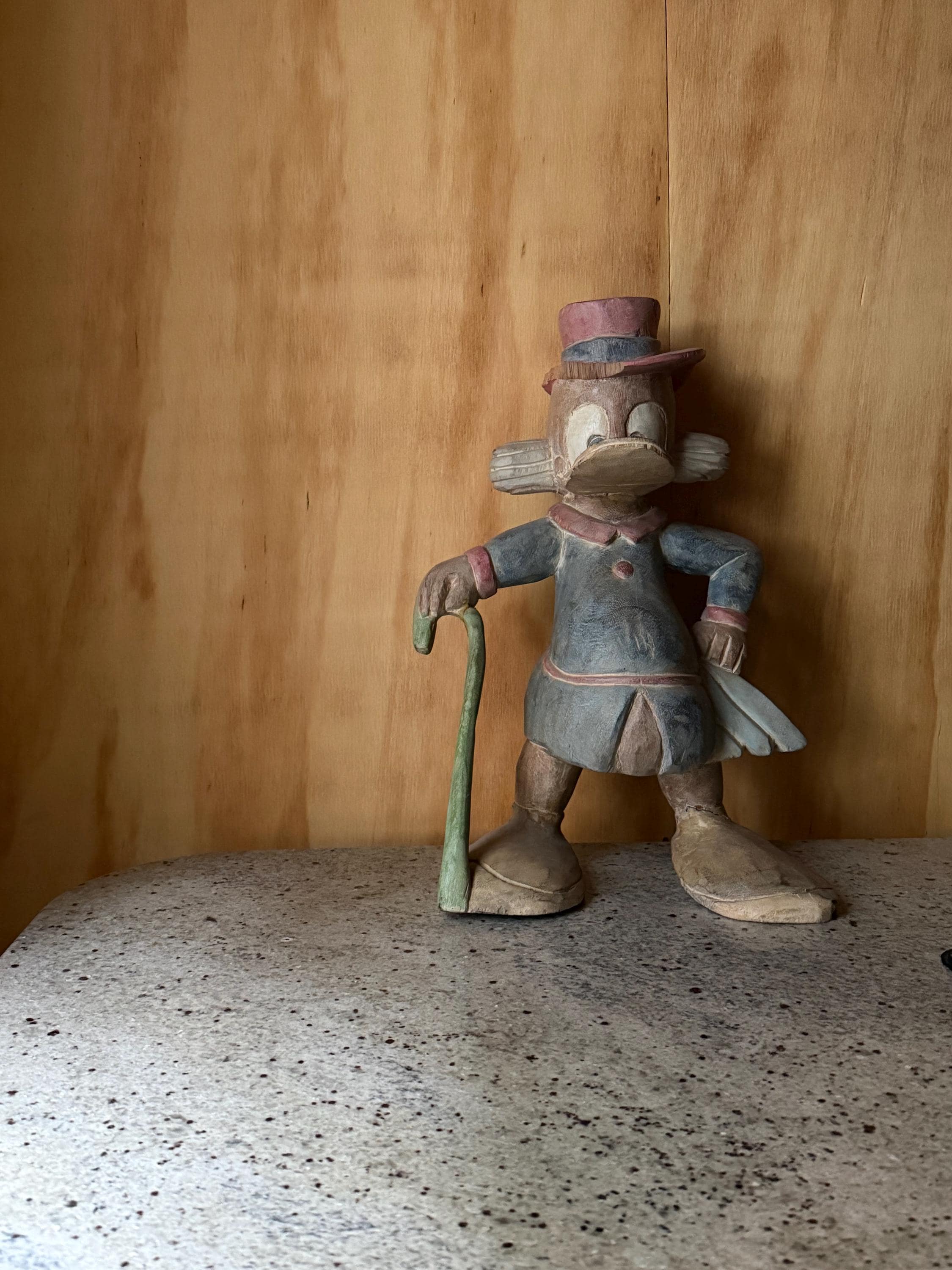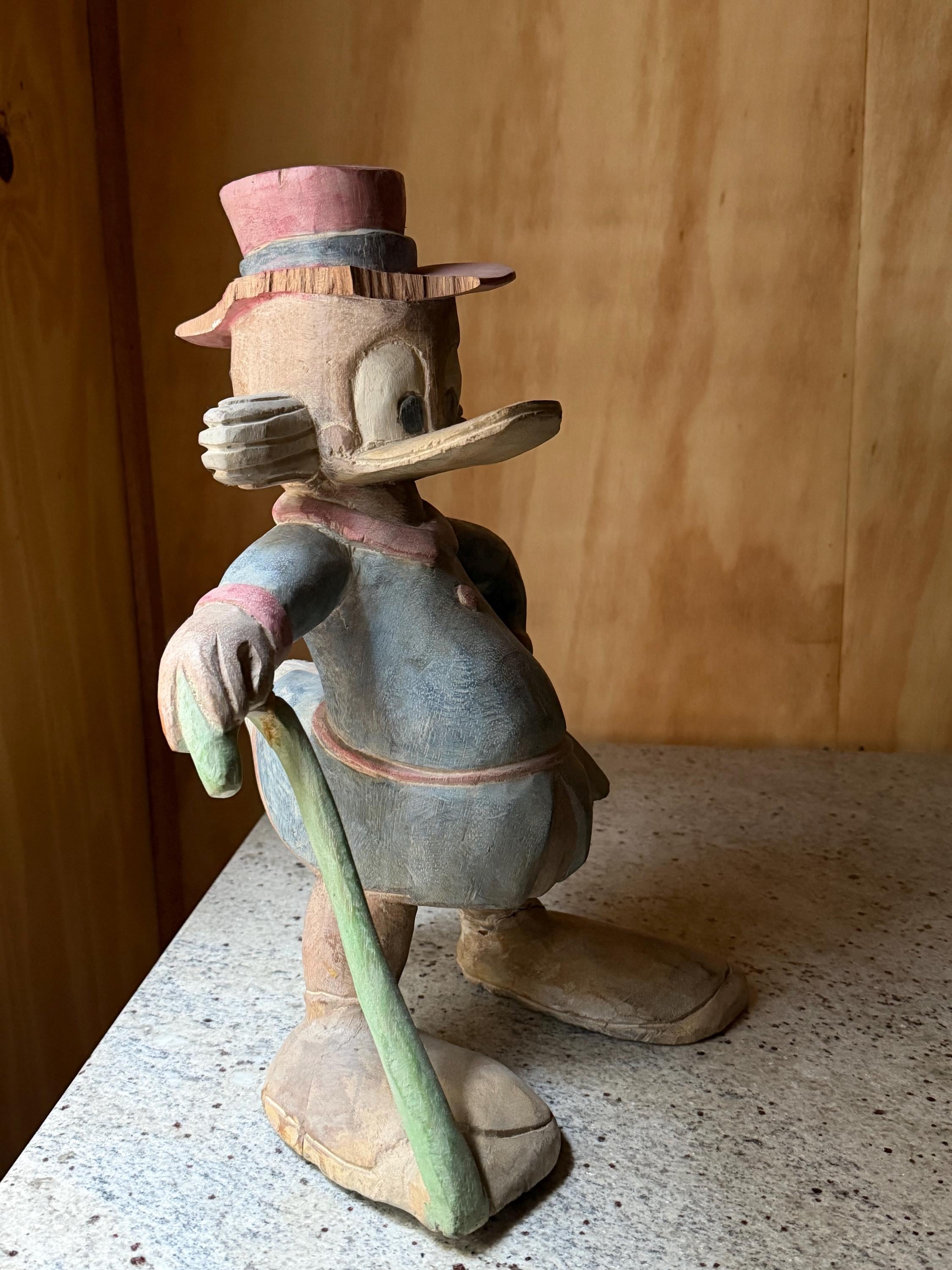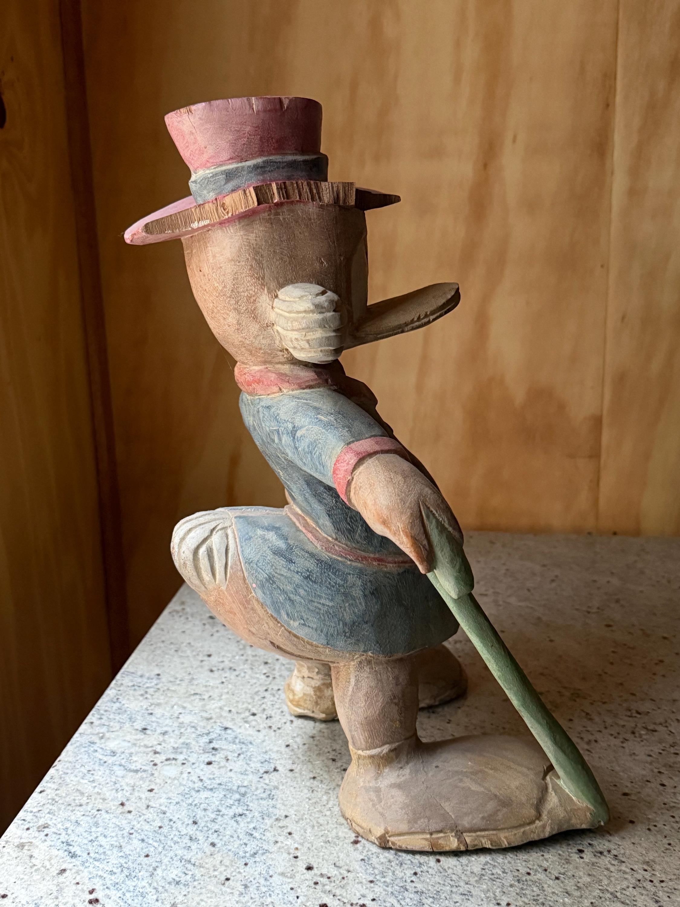 Large Disney Vintage Wooden Scrooge McDuck Figurine – Hand-Carved Disney Character Statue – Rustic Hand Painted Collector Decor