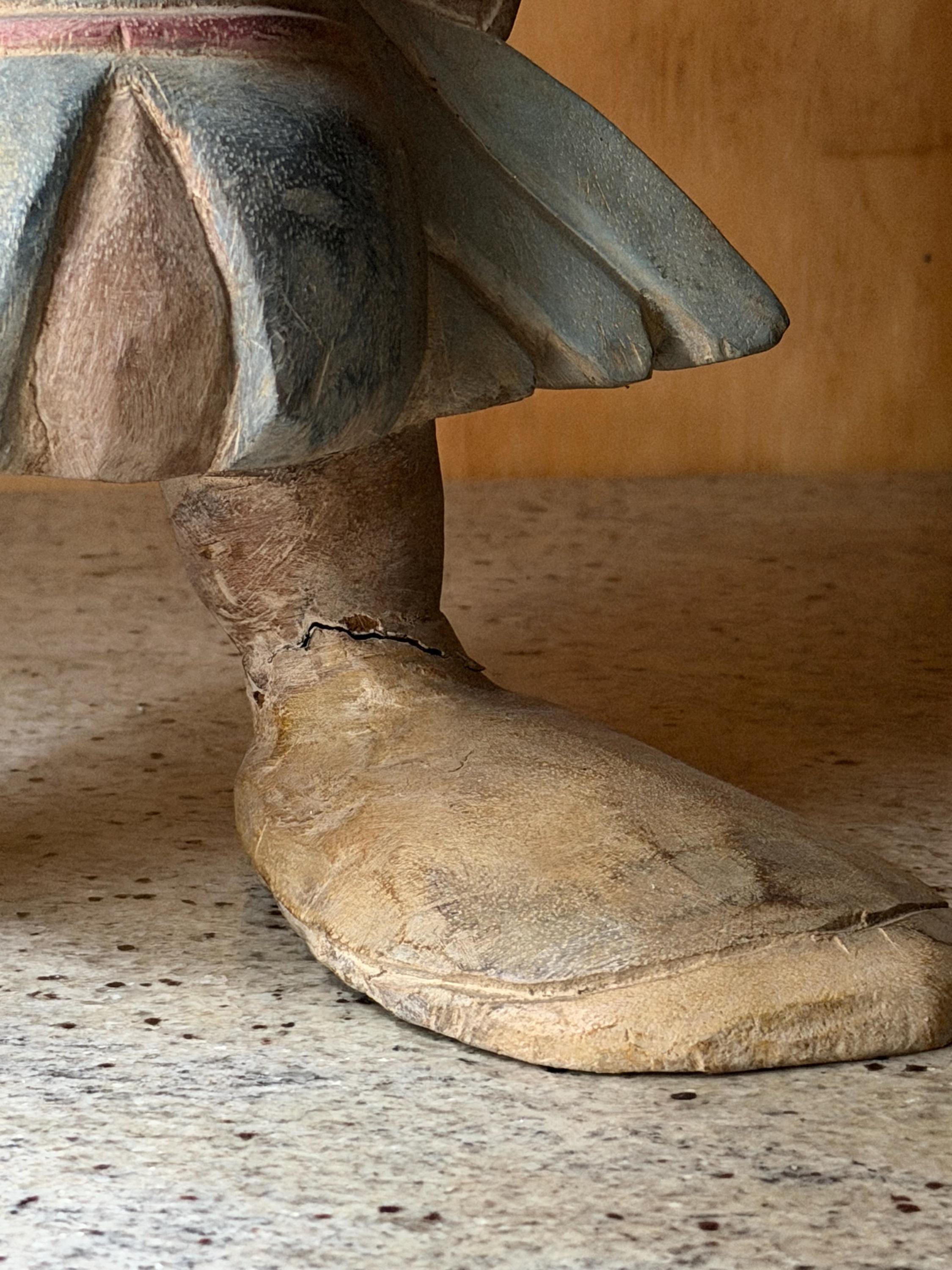 Carefully carved from solid wood and hand painted, this piece has developed a beautiful aged patina over time. The gentle wear and imperfections give it authenticity and soul, making it feel like a true vintage treasure rather than a modern reproduction.