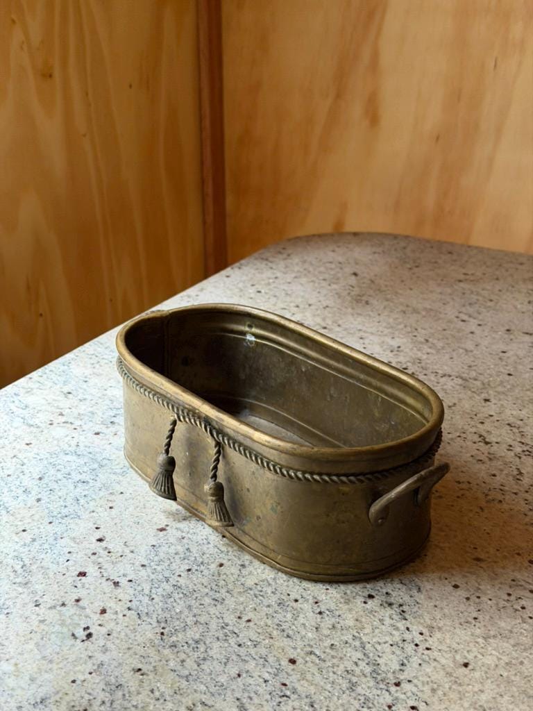 Vintage Brass Jardinière Planter | Oval Cachepot | French Style Decorative Planter | Neoclassical Home Decor