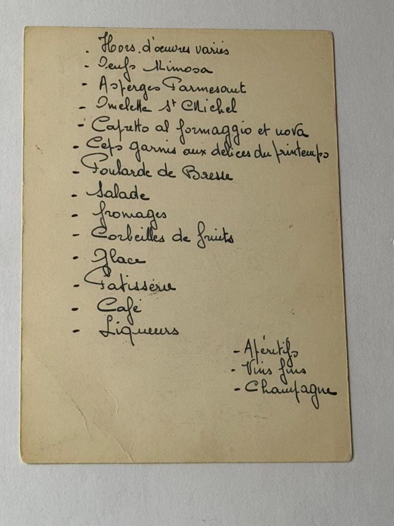 • Original handwritten French menu