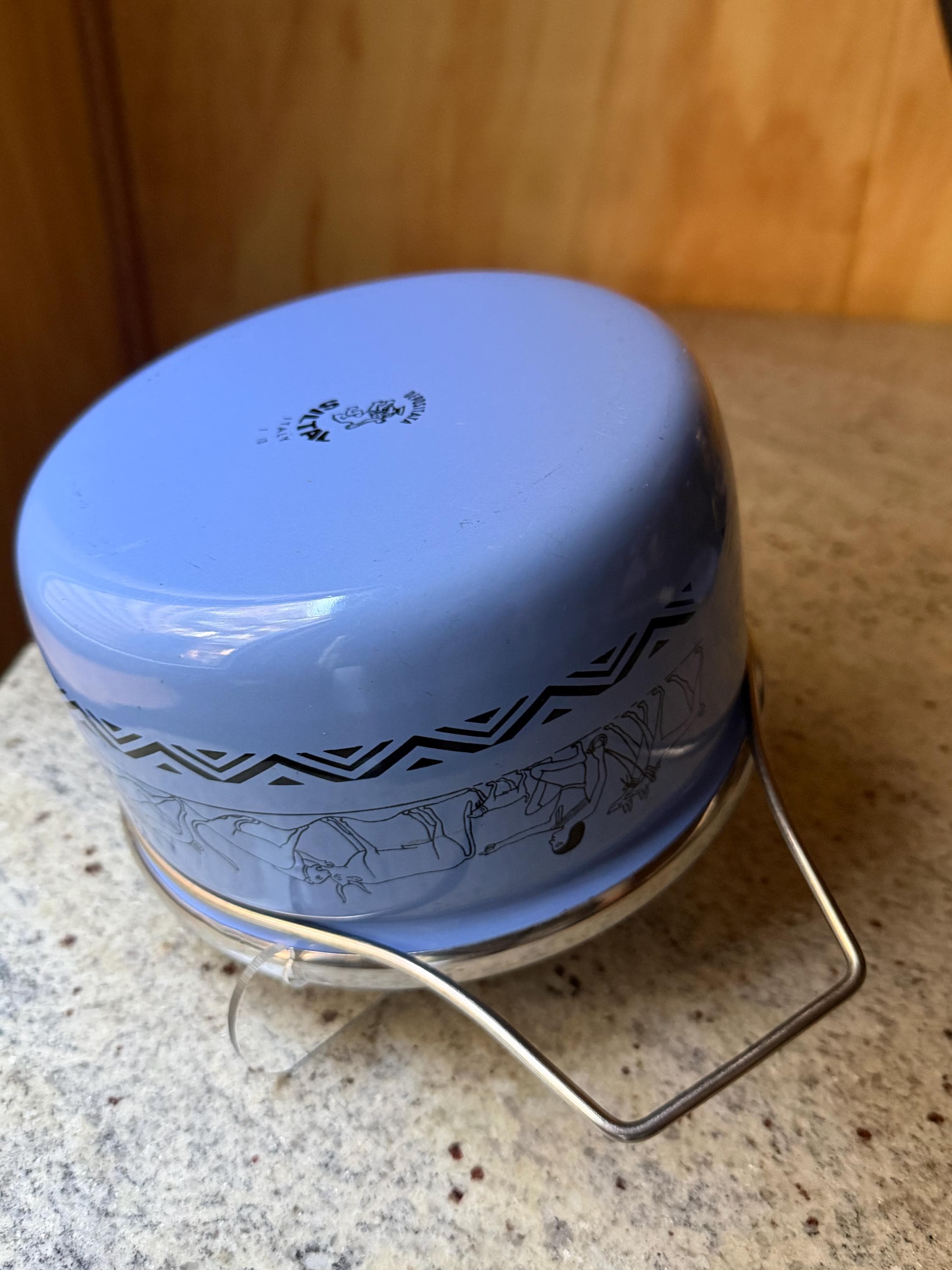 Siltal cookware is known for its **high-quality Italian enamel production**, and pieces with this decorative motif are becoming increasingly collectible among **mid-century design and vintage kitchenware enthusiasts**.
