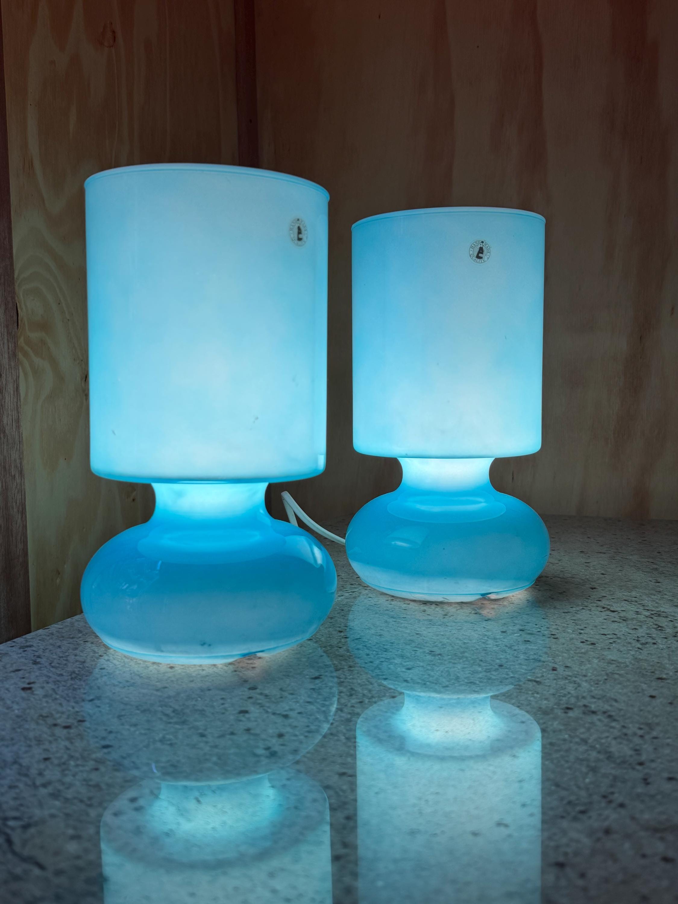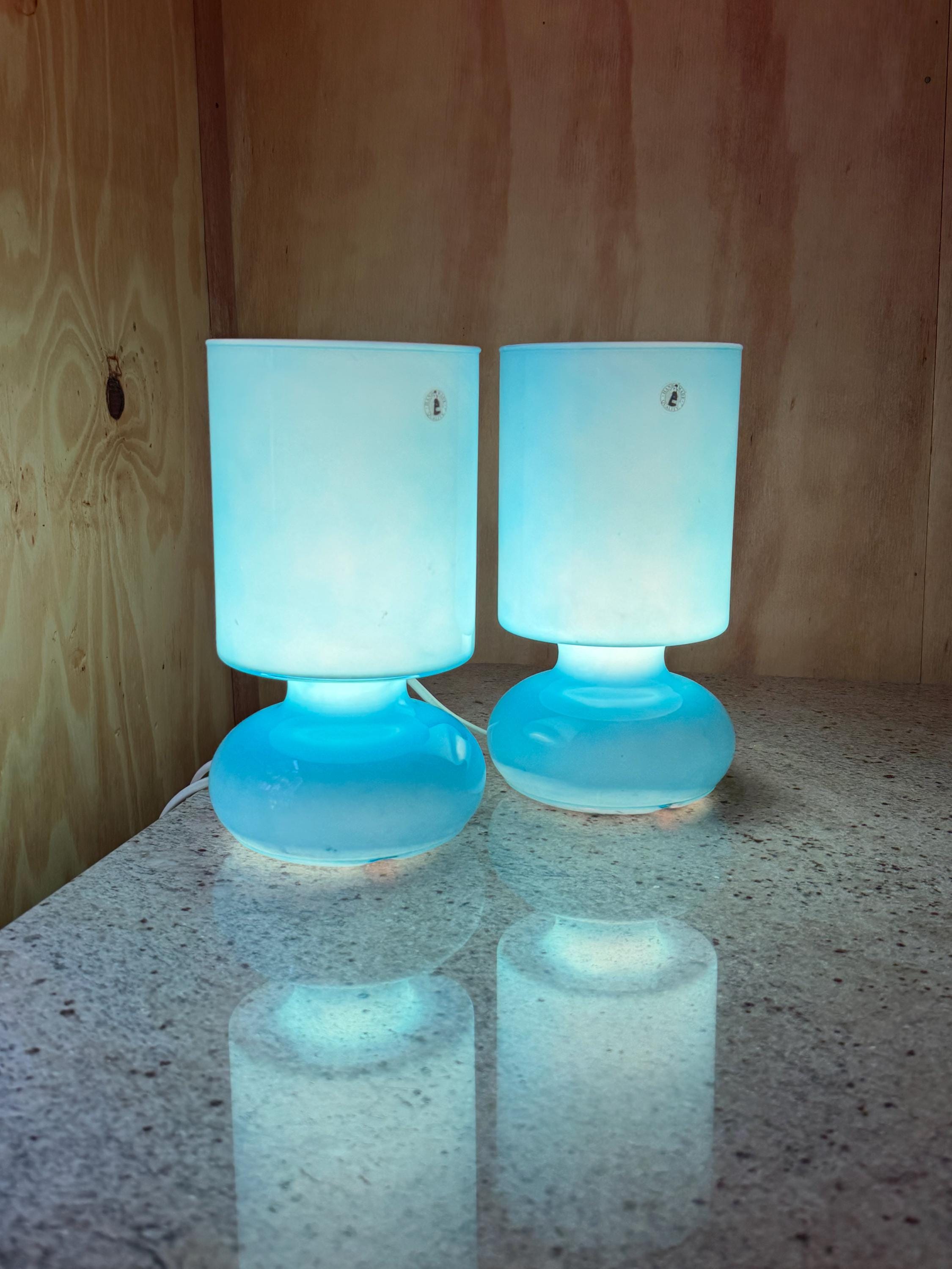 **Set of 2 Vintage IKEA Lykta Blue Mushroom Lamps – 1990s Space Age Table Lamps – Retro Scandinavian Bedside Lighting**