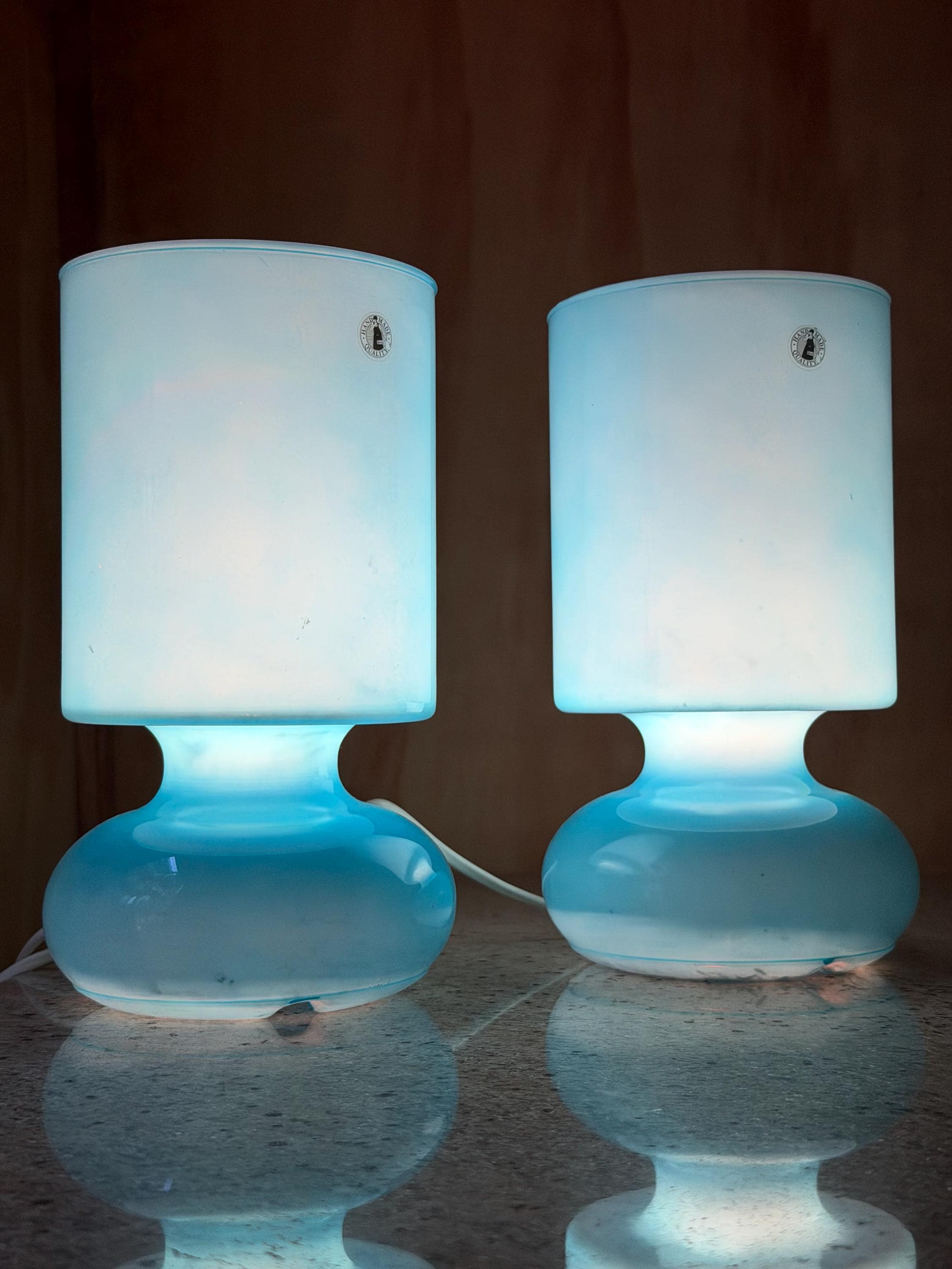 When illuminated, the opaline glass creates a warm and atmospheric glow, making them perfect as **bedside lamps, nightstand lighting, or cozy accent lights** in a living room or reading corner.